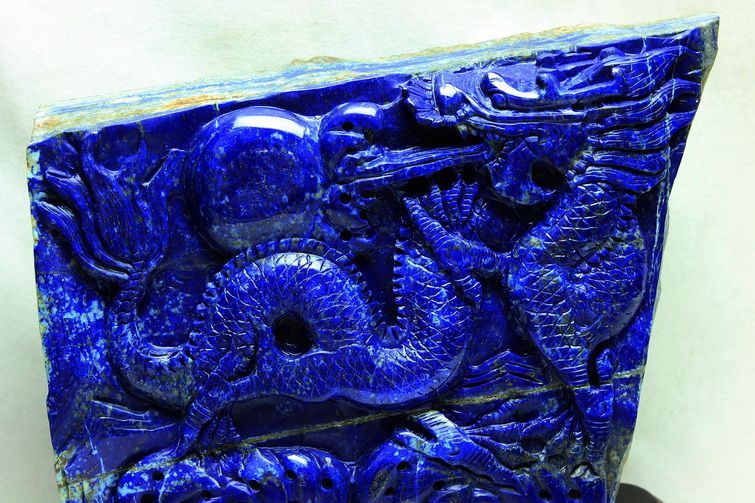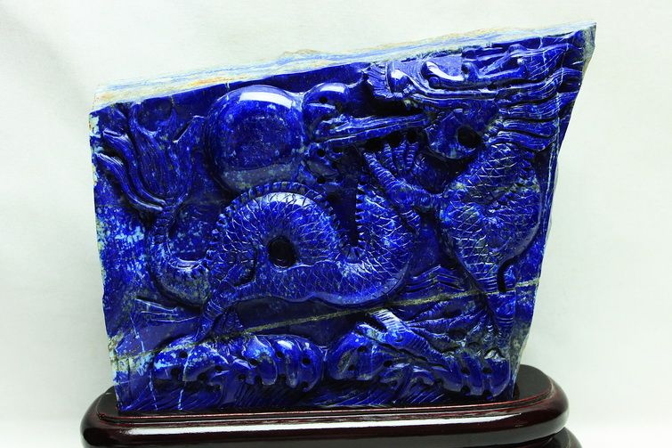 2.7Kg ラピスラズリ 手彫り 龍 置物[S3-17]