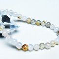 誠安天然石専門店【本店】TOP 素材で探す(ア行) 素材で探す(タ行)デンドリッククォーツブレスレット 素材で探す(ア行)アゲート(メノウ・瑪瑙)ブレスレット ブレスレット 今週の新着商品2月16日の新着商品 デンドリック アゲート ブレスレット 6mm [t108-6144] 価格: ¥500 (税込) [ポイント還元 5ポイント~] 販売期間: 数量: 個 在庫: 1個 在庫 1個 § 商品について §商品ID◆t108-6144 重 量◆物重さ:約 9.8g ◆ 総物重(梱包前) 約 9.8g (本体、箱等を含む)商品サイズ◆内周:約159mm(±5mm) 粒直径:約6mm(±0.5mm)【アゲート(瑪瑙)】 和名では瑪瑙(めのう)といい、アゲートの模様が馬の脳のように見える事からこのような名前が付けられました。 アゲートは赤、緑、青、黄、黒など、様々な色に着色されることで石本来のパワーがさらにアップするといわれており、着色により魅力を増す天然石はアゲートだけとも言えます。 さらにはアゲートを組み合わせるとペアになっているペアアゲート(トレジャーメノウ)は龍穴を生み出すとされ、風水的にも良いといわれています。 アゲートは古来より日本やインドやチベットなどで魔よけやお守りとされてきました。 失敗や不幸を遠ざけ金運や仕事運、成功運とも結び付けてくれる効果のほか、安産のお守りにも良いとされています。 さらに家庭円満や対人関係をスムーズにするなど、オールマイティな効果を持った石です。 ⇒ アゲートをもっと詳しく ◆ワンポイント情報 アゲートはカルセドニーの変種で、染色がされていなくともそれぞれの種類に多様な色があります。 ざっと仲間を挙げてみてもオニキス(黒)、サードニクス(橙色)、ブルーアゲート(青)、グリーンアゲート(緑)、イエローアゲート(黄)、ブルーレースアゲート(縞青)、モスアゲート(縞緑)、天眼石(縞黒)、カーネリアン(橙色)、ジャスパー(多様な縞)などとても多くの特徴と色合いを持っています。 ▼出品商品の全ては産地から直接仕入れた新品ですが、天然の物ですので不純物や内包物、色むら、天然キズ、ひびがある場合がございます。また商品はできるだけ現物に近い色で撮影していますが、光源.カメラ.モニター画面により実物と色が若干異なる場合があります。▼物重さ、商品のサイズなどは測り方によって誤差が生じる場合があります。▼誠安では環境に配慮し最低限の簡易包装で商品をお届けいたします。