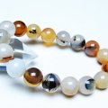 誠安天然石専門店【本店】TOP 素材で探す(ア行) 素材で探す(タ行)デンドリッククォーツブレスレット 素材で探す(ア行)アゲート(メノウ・瑪瑙)ブレスレット ブレスレット デンドリック アゲート ブレスレット 12mm [T108-6328] 価格: ¥600 (税込) [ポイント還元 6ポイント~] 販売期間: 数量: 個 在庫: 1個 在庫 1個 § 商品について §商品ID◆t108-6328 重 量◆物重さ:約 39.5g ◆ 総物重(梱包前) 約 39.5g (本体、箱等を含む)商品サイズ内周:約163mm(±5mm) 粒直径:約12mm(±0.5mm)【アゲート(瑪瑙)】 和名では瑪瑙(めのう)といい、アゲートの模様が馬の脳のように見える事からこのような名前が付けられました。 アゲートは赤、緑、青、黄、黒など、様々な色に着色されることで石本来のパワーがさらにアップするといわれており、着色により魅力を増す天然石はアゲートだけとも言えます。 さらにはアゲートを組み合わせるとペアになっているペアアゲート(トレジャーメノウ)は龍穴を生み出すとされ、風水的にも良いといわれています。 アゲートは古来より日本やインドやチベットなどで魔よけやお守りとされてきました。 失敗や不幸を遠ざけ金運や仕事運、成功運とも結び付けてくれる効果のほか、安産のお守りにも良いとされています。 さらに家庭円満や対人関係をスムーズにするなど、オールマイティな効果を持った石です。 ⇒ アゲートをもっと詳しく ◆ワンポイント情報 アゲートはカルセドニーの変種で、染色がされていなくともそれぞれの種類に多様な色があります。 ざっと仲間を挙げてみてもオニキス(黒)、サードニクス(橙色)、ブルーアゲート(青)、グリーンアゲート(緑)、イエローアゲート(黄)、ブルーレースアゲート(縞青)、モスアゲート(縞緑)、天眼石(縞黒)、カーネリアン(橙色)、ジャスパー(多様な縞)などとても多くの特徴と色合いを持っています。 ▼出品商品の全ては産地から直接仕入れた新品ですが、天然の物ですので不純物や内包物、色むら、天然キズ、ひびがある場合がございます。また商品はできるだけ現物に近い色で撮影していますが、光源.カメラ.モニター画面により実物と色が若干異なる場合があります。▼物重さ、商品のサイズなどは測り方によって誤差が生じる場合があります。▼誠安では環境に配慮し最低限の簡易包装で商品をお届けいたします。