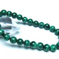誠安天然石専門店【本店】TOP 素材で探す(マ行) 素材で探す(マ行)マラカイト(孔雀石)ブレスレット ブレスレット 今週の新着商品3月18日の新着商品 マラカイト ブレスレット 7mm [t115-4727] 価格: ¥1,700 (税込) [ポイント還元 17ポイント~] 販売期間: 数量: 個 在庫: 在庫切れ 在庫 在庫切れ § 商品について §商品ID◆t115-4727 重 量◆物重さ:約 20g ◆ 総物重(梱包前) 約 20g (本体、箱等を含む)商品サイズ◆内周:約158mm(±5mm) 粒直径:約7mm(±0.5mm)【マラカイト(孔雀石)】 孔雀の羽のような鮮やかな緑色と独自の縞模様を持つ天然石で、マラカイトは鮮やかかつ縞模様がくっきりと見えるものほど価値が高いとされています。 産地としてはロシアのウラル山脈にあるニジニ・タギリスクの銅鉱山が最も有名で、かつては日本でも秋田県にある荒川鉱山などで良質なマラカイトが産出されていました。 マラカイトの歴史は古く、古代エジプトでは紀元前3000年頃から顔料や化粧品の材料として用いられていたといわれています。 かの有名なクレオパトラも魔除けにマラカイトの粉末を油で溶いたものをアイシャドウとして使っていたという記録も残っています。 マラカイトは強い邪気払いのエネルギーを持ち、災いを事前に察知する能力を高めるとされているのでビジネス面でのお守りとして心強いサポートが得られるでしょう。 また精神と肉体の両方にヒーリング効果をもたらしてくれますので、ストレスで精神的に疲れてしまったり、しっかりとした休息が取れずに体力的に辛い時に身に着けることをおすすめします。 ⇒ マラカイトをもっと詳しく ◆ワンポイント情報 マラカイトは硬度が3.6~4と低いため衝撃を与えると割れてしまうので取り扱いには十分注意しましょう。 また、水分や塩分にも弱いので身に着けた後は柔らかい布で拭きとり、こまめにケアをするようにしてください。▼出品商品の全ては産地から直接仕入れた新品ですが、天然の物ですので不純物や内包物、色むら、天然キズ、ひびがある場合がございます。また商品はできるだけ現物に近い色で撮影していますが、光源.カメラ.モニター画面により実物と色が若干異なる場合があります。▼物重さ、商品のサイズなどは測り方によって誤差が生じる場合があります。▼誠安では環境に配慮し最低限の簡易包装で商品をお届けいたします。