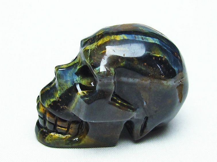 誠安天然石専門店【本店】TOP 素材で探す(タ行) 素材で探す(タ行)タイガーアイ(虎目石)置物 置物 素材で探す(カ行)クリスタル(水晶)置物クリスタルスカル タイガーアイ ドクロ 骸骨 スカル 置物 [T130-1650] 価格: ¥1,980 (税込) [ポイント還元 19ポイント~] 販売期間: 数量: 個 在庫: 1個 在庫 1個 レビューはありません § 商品について § 商品ID ◆ T130-1650 重 量 ◆ 物重さ:約 113g ◆ 総物重(梱包前) 約 144g (本体、箱等を含む) 商品サイズ ◆ 高約:44mm 横約:30mm 厚約:53mm 【タイガーアイ(虎目石)】 タイガーアイは角閃石の一種のクロシドライト(青石綿)に石英が染み込んで酸化し、茶色や黄金色になったものです。 研磨すると光の当たり具合によってキャッツアイ効果、またはシャトヤンシー効果と呼ばれる猫の目のような光の筋が見られ、その輝きと黄金色と褐色の縞模様が虎の眼に見えることからこの名前が付けられました。 ベーシックな金茶色の他にも様々な色合いがあり、温度が高い環境で生成されると深い赤みを帯びたレッドタイガーアイになります。 この他にクロシドライトが酸化せずに生成された灰色のグレータイガーアイは「ウルフズアイ(狼目石)」、濃青色をしたブルータイガーアイは「ホークアイ(鷹目石)」と呼ばれ、タイガーアイとは区別される場合があります。 タイガーアイは視野を広げ正しい判断力と行動力で成功へ導くとされ、ルチルクォーツに匹敵するほどの金運・仕事運アップストーンとして高い知名度と人気を誇っています。 また男性イメージの強い石ではありますが、強力な邪気払い・トラブル回避の効果も持ち合わせていますので女性にはストーカーやセクハラ対策のお守りとしても有用です。 ⇒ タイガーアイをもっと詳しく ◆ワンポイント情報 タイガーアイは塩分によって劣化しやすいので汗が付いた場合は柔らかい布で拭き取るようにし、塩を用いた浄化は行わないように注意しましょう。 ▼出品商品の全ては産地から直接仕入れた新品ですが、天然の物ですので不純物や内包物、色むら、天然キズ、ひびがある場合がございます。 また商品はできるだけ現物に近い色で撮影していますが、光源.カメラ.モニター画面により実物と色が若干異なる場合があります。 ▼物重さ、商品のサイズなどは測り方によって誤差が生じる場合があります。 ▼誠安では環境に配慮し最低限の簡易包装で商品をお届けいたします。