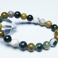 誠安天然石専門店【本店】TOP 素材で探す(サ行) 素材で探す(サ行)ジャスパー(碧玉) 素材で探す(サ行)ジャスパー(碧玉)オーシャンジャスパー ブレスレット 今週の新着商品4月27日の新着商品 オーシャンジャスパー ブレスレット 9mm [t153-2984] 価格: ¥7,700 (税込) [ポイント還元 77ポイント~] 販売期間: 数量: 個 在庫: 1個 在庫 1個 § 商品について §商品ID◆t153-2984 重 量◆物重さ:約 21.2g ◆ 総物重(梱包前) 約 21.2g (本体、箱等を含む)商品サイズ◆内周:約156mm(±5mm) 粒直径:約9mm(±0.5mm)【ジャスパー(碧玉)】 ジャスパーは石英の結晶に様々な不純物が混じり結合した鉱物で、アゲートやカルセドニーと同じ仲間です。 構成が似ているため分類が難しいのですが、基本的に不純物の割合が多く不透明のものがジャスパーとされています。 抽象画のような味わい深い模様を持つものや鮮やかな色合いを持つものなど多彩な表情を持ち、個性を楽しめる石のひとつだといえるでしょう。 ジャスパーは日本にも縁が深く弥生時代から管玉や勾玉に加工され古くから装飾品として愛用されてきました。 なかでも島根県の玉造温泉は玉造石を使った勾玉の名産地だったといわれており、この土地で産出されたジャスパーは玉造石のひとつとして「出雲石」という別名でも親しまれています。 このほかにも青森県で産出される「綿石」もジャスパーを含んだ美石として知られています。 ジャスパーは正しい判断力と決断力をもたらすとされ、心身の疲労やストレスを癒すヒーリング効果も期待されます。 バランスをとる能力に長けた石ですので、仕事や人間関係でうまく立ち回りたい方や、生活に安定や平穏を望む方に特におすすめです。 ⇒ ジャスパーをもっと詳しく ◆ワンポイント情報 ジャスパーは不純物の成分によって色合いが大きく異なります。ヘマタイトを含有したものは赤色、クローライトを含有したものは緑色、クレイ粘土などの不純物が含有した黄色など、多彩な色合いのジャスパーが存在します。 ▼出品商品の全ては産地から直接仕入れた新品ですが、天然の物ですので不純物や内包物、色むら、天然キズ、ひびがある場合がございます。また商品はできるだけ現物に近い色で撮影していますが、光源.カメラ.モニター画面により実物と色が若干異なる場合があります。▼物重さ、商品のサイズなどは測り方によって誤差が生じる場合があります。▼誠安では環境に配慮し最低限の簡易包装で商品をお届けいたします。