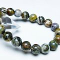 誠安天然石専門店【本店】TOP 素材で探す(サ行) 素材で探す(サ行)ジャスパー(碧玉) 素材で探す(サ行)ジャスパー(碧玉)オーシャンジャスパー ブレスレット オーシャンジャスパー ブレスレット 11mm [T153-3441] 価格: ¥1,800 (税込) [ポイント還元 18ポイント~] 販売期間: 数量: 個 在庫: 1個 在庫 1個 § 商品について §商品ID◆t153-3441 重 量◆物重さ:約 30.1g ◆ 総物重(梱包前) 約 30.1g (本体、箱等を含む)商品サイズ内周:約163mm(±5mm) 粒直径:約11mm(±0.5mm)【ジャスパー(碧玉)】 ジャスパーは石英の結晶に様々な不純物が混じり結合した鉱物で、アゲートやカルセドニーと同じ仲間です。 構成が似ているため分類が難しいのですが、基本的に不純物の割合が多く不透明のものがジャスパーとされています。 抽象画のような味わい深い模様を持つものや鮮やかな色合いを持つものなど多彩な表情を持ち、個性を楽しめる石のひとつだといえるでしょう。 ジャスパーは日本にも縁が深く弥生時代から管玉や勾玉に加工され古くから装飾品として愛用されてきました。 なかでも島根県の玉造温泉は玉造石を使った勾玉の名産地だったといわれており、この土地で産出されたジャスパーは玉造石のひとつとして「出雲石」という別名でも親しまれています。 このほかにも青森県で産出される「綿石」もジャスパーを含んだ美石として知られています。 ジャスパーは正しい判断力と決断力をもたらすとされ、心身の疲労やストレスを癒すヒーリング効果も期待されます。 バランスをとる能力に長けた石ですので、仕事や人間関係でうまく立ち回りたい方や、生活に安定や平穏を望む方に特におすすめです。 ⇒ ジャスパーをもっと詳しく ◆ワンポイント情報 ジャスパーは不純物の成分によって色合いが大きく異なります。ヘマタイトを含有したものは赤色、クローライトを含有したものは緑色、クレイ粘土などの不純物が含有した黄色など、多彩な色合いのジャスパーが存在します。 ▼出品商品の全ては産地から直接仕入れた新品ですが、天然の物ですので不純物や内包物、色むら、天然キズ、ひびがある場合がございます。また商品はできるだけ現物に近い色で撮影していますが、光源.カメラ.モニター画面により実物と色が若干異なる場合があります。▼物重さ、商品のサイズなどは測り方によって誤差が生じる場合があります。▼誠安では環境に配慮し最低限の簡易包装で商品をお届けいたします。
