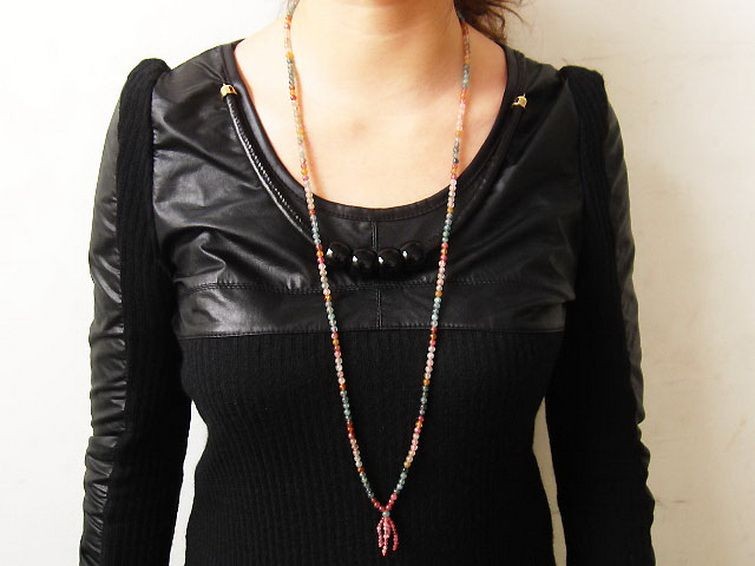 トルマリン3重 ブレスレット ネックレス 兼用可4mm [T179-183]