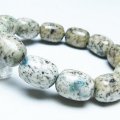 誠安天然石専門店【本店】TOP 素材で探す(カ行)K2ストーン(K2ブルー)ブレスレット ブレスレット K2ストーン アズライト イン グラナイト ブレスレット [t193-4027] 価格: ¥2,900 (税込) [ポイント還元 29ポイント~] 販売期間: 数量: 個 在庫: 1個 在庫 1個 § 商品について §商品ID◆t193-4027 重 量◆物重さ:約 69.4g ◆ 総物重(梱包前) 約 69.4g (本体、箱等を含む)商品サイズ◆内周:約177mm(±5mm)【K2ストーン(藍銅鉱)】 K2ストーンはアズライトとグラナイト(花崗岩)が融合したストーンで、パキスタン北部のカラコルム山脈の「K2」という山からのみ産出されます。 K2はエベレストに次いで世界2位の高さを持つ山で、登頂の難易度はエベレストを超えると言われています。 厳しく危険な環境下でしか採掘されず、アズライトとグラナイトが共生することが非常に稀なことからK2ストーンは「奇跡の石」とも呼ばれます。 K2ストーンは霊性が高く、直観力と明晰な判断力、創造性や独創性などの才能を伸ばす効果があるといわれています。 また、世界的に有名なヘブン&アース社の代表であるロバート・シモンズ氏をもってして「最強のヒーリングストーン」と言わしめたほど癒しの効果が高いとされ、睡眠による回復がうまくとれていない時や、精神がギスギスしてきていると感じた時におすすめです。 ⇒ K2ストーンをもっと詳しく ◆ワンポイント情報 k2ストーンは複数の流通名が用いられています。日本国内では主に「K2ブルー」や「K2アズライト」、海外では「K2ストーン」「K2ブルーグラナイト」「アズライトイングラナイト」などの名称で流通しています。▼出品商品の全ては産地から直接仕入れた新品ですが、天然の物ですので不純物や内包物、色むら、天然キズ、ひびがある場合がございます。また商品はできるだけ現物に近い色で撮影していますが、光源.カメラ.モニター画面により実物と色が若干異なる場合があります。▼物重さ、商品のサイズなどは測り方によって誤差が生じる場合があります。▼誠安では環境に配慮し最低限の簡易包装で商品をお届けいたします。