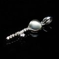 誠安天然石専門店【本店】TOP 素材で探す(マ行) 素材で探す(マ行)ムーンストーン(月長石)ペンダント ペンダント ムーンストーン ペンダント [T22-2975] 価格: ¥1,580 (税込) [ポイント還元 15ポイント~] 販売期間: 数量: 個 在庫: 1個 在庫 1個 § 商品について §商品ID◆t22-2975 重 量◆物重さ:約 1.8g ◆ 総物重(梱包前) 約 1.8g (本体、箱等を含む)商品サイズ高さ:約24mm 横:約9mm 厚さ:約6mm【ムーンストーン(月長石)】 ムーンストーンは長石の一種で正長石(オーソクレース)を主としアルバイト(曹長石)成分を含んでいます。そのために美しいシラー効果が確認できます。乳白色や半透明のものが一般的ですが、他にも青やオレンジ等の様々な色が確認されています。柔らかい月の明かりのような光沢を持ち、真珠を思わせるような上品な石です。 ムーンストーンは古来より月の光が宿る石とされてきました。灼熱の国インドでは月は安らぎの象徴とし崇められてきましたが、その月の力を宿した聖石としてムーンストーンを身に着けていたそうです。 月の光のような柔らかな波動を持つムーンストーンは、心配や緊張を解きほぐし、心や情緒を安定させる効果があるとされていることからうつ病やノイローゼを防ぐとされています。また感受性や危機を察する直観力が高まるとされ、厄除けになることから旅人の守護石ともされています。 自分の中にある潜在能力を高め、ひらめきをもたらしてくれるとされていますのでクリエイティブな職業に携わっている方にお勧めしたい石です。 恋愛面においては「恋人たちの石」と呼ばれ、互いの絆や愛情を深めるために恋人への贈り物ともされてきました。またお目当ての異性に贈ると、恋が芽生えたり、友情が愛情に変わるとも言われています。一度終わった関係を復活させる等、別れた恋人同士を再び結びつけるという伝承もあります。遠距離恋愛の守護石としても有名です。変わらない愛情と優しい情熱を盛り上げてくれるそうですので、夫婦で持つのもお勧めです。 ■ワンポイント情報 月は女性性を象徴し、女性の身体の調子も月の満ち欠けに関わっているという説は有名です。ムーンストーンは女性特有の身体の不調や更年期等のイライラを鎮めてくれるとされています。また生理痛、不妊、出産の痛みを改善し、安産のお守りともされています。 暗い夜道を照らす月の光のように、闇の悪霊を祓い、危険を察知する感が良くなるとされていますので、夜道を歩いて帰宅する女性はお守りとして一つ持つと良いかもしれません。▼出品商品の全ては産地から直接仕入れた新品ですが、天然の物ですので不純物や内包物、色むら、天然キズ、ひびがある場合がございます。また商品はできるだけ現物に近い色で撮影していますが、光源.カメラ.モニター画面により実物と色が若干異なる場合があります。▼物重さ、商品のサイズなどは測り方によって誤差が生じる場合があります。▼誠安では環境に配慮し最低限の簡易包装で商品をお届けいたします。