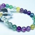 誠安天然石専門店【本店】TOP 素材で探す(ハ行) 素材で探す(ハ行)フローライト(蛍石)ブレスレット ブレスレット フローライト ブレスレット 8mm [T229-5487] 価格: ¥900 (税込) [ポイント還元 9ポイント~] 販売期間: 数量: 個 在庫: 1個 在庫 1個 § 商品について §商品ID◆t229-5487 重 量◆物重さ:約 20.8g ◆ 総物重(梱包前) 約 20.8g (本体、箱等を含む)商品サイズ内周:約155mm(±5mm) 粒直径:約8mm(±0.5mm)【フローライト(蛍石)】 フローライトは鮮やかなカラーのグラデーションが美しい天然石で、トルマリンに次ぐカラーバリエーションを持つとされています。 フローライトの中に白い羽のような内包物が入ったものは「エンジェルフェザーフローライト」と呼ばれ、普通のフローライトに比べて癒しの効果に特化しているとされています。 白い内包物の正体は未だに解明されておらず、アラゴナイトの一種やゼオライト、クォーツなど諸説あります。 フローライトはラテン語で流れるという意味の「fluere」が由来となっており、その言葉どおり滞っていた気の流れを整えて心身と環境のバランスを調和させるエネルギーを持つとされています。 また「天才の石」とも呼ばれ、思考力と記憶力、集中力を高めるとされており、クリエイティブな能力を引き出すといわれています。 緑は癒し、紫は浄化、青は知性、黄色は希望など、色合いによって持つ意味や効果に違いがあるともされていますので、期待する効果によってフローライトを選ぶのもおすすめです。 ⇒ フローライトをもっと詳しく ◆ワンポイント情報 フローライトは硬度が低く、一方向に割れやすい劈開性を持つため衝撃を与えないようにしてください。 また、紫外線や水分も褪色や劣化の原因となりますので保管の際も注意が必要です。 ▼出品商品の全ては産地から直接仕入れた新品ですが、天然の物ですので不純物や内包物、色むら、天然キズ、ひびがある場合がございます。また商品はできるだけ現物に近い色で撮影していますが、光源.カメラ.モニター画面により実物と色が若干異なる場合があります。▼物重さ、商品のサイズなどは測り方によって誤差が生じる場合があります。▼誠安では環境に配慮し最低限の簡易包装で商品をお届けいたします。