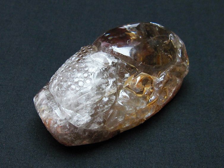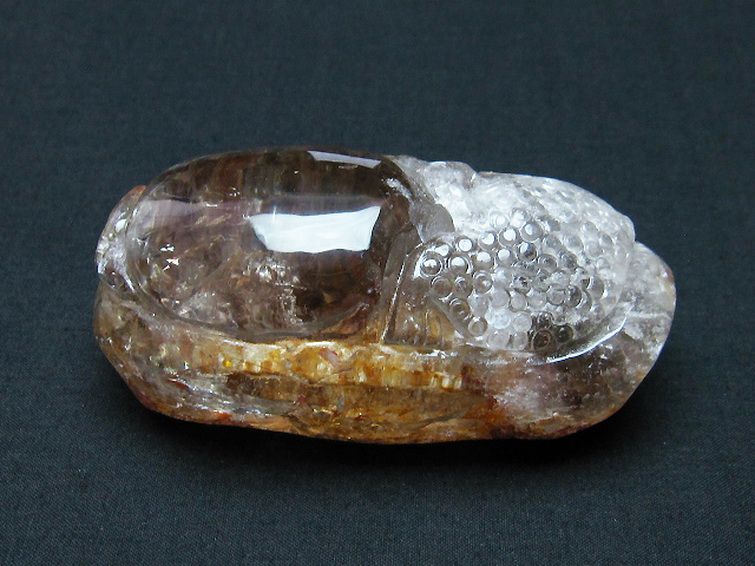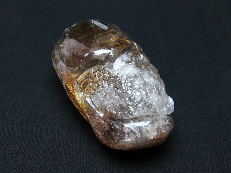 虹入り ライトニング水晶 手彫り 魚 置物[T261-1146]