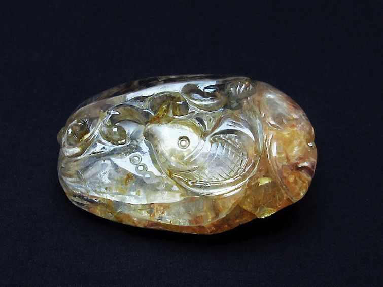 ヒマラヤ水晶 手彫り 魚 置物[T261-1162]