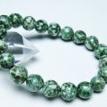 誠安天然石専門店【本店】TOP 素材で探す(サ行) 素材で探す(サ行)ジャスパー(碧玉) 素材で探す(サ行)ジャスパー(碧玉)グリーンスポットジャスパー ブレスレット グリーンスポットジャスパー ブレスレット 10mm [T285-1398] 価格: ¥1,400 (税込) [ポイント還元 14ポイント~] 販売期間: 数量: 個 在庫: 1個 在庫 1個 § 商品について §商品ID◆t285-1398 重 量◆物重さ:約 32.8g ◆ 総物重(梱包前) 約 32.8g (本体、箱等を含む)商品サイズ内周:約165mm(±5mm) 粒直径:約10mm(±0.5mm)【ジャスパー(碧玉)】 ジャスパーは石英の結晶に様々な不純物が混じり結合した鉱物で、アゲートやカルセドニーと同じ仲間です。 構成が似ているため分類が難しいのですが、基本的に不純物の割合が多く不透明のものがジャスパーとされています。 抽象画のような味わい深い模様を持つものや鮮やかな色合いを持つものなど多彩な表情を持ち、個性を楽しめる石のひとつだといえるでしょう。 ジャスパーは日本にも縁が深く弥生時代から管玉や勾玉に加工され古くから装飾品として愛用されてきました。 なかでも島根県の玉造温泉は玉造石を使った勾玉の名産地だったといわれており、この土地で産出されたジャスパーは玉造石のひとつとして「出雲石」という別名でも親しまれています。 このほかにも青森県で産出される「綿石」もジャスパーを含んだ美石として知られています。 ジャスパーは正しい判断力と決断力をもたらすとされ、心身の疲労やストレスを癒すヒーリング効果も期待されます。 バランスをとる能力に長けた石ですので、仕事や人間関係でうまく立ち回りたい方や、生活に安定や平穏を望む方に特におすすめです。 ⇒ ジャスパーをもっと詳しく ◆ワンポイント情報 ジャスパーは不純物の成分によって色合いが大きく異なります。ヘマタイトを含有したものは赤色、クローライトを含有したものは緑色、クレイ粘土などの不純物が含有した黄色など、多彩な色合いのジャスパーが存在します。 ▼出品商品の全ては産地から直接仕入れた新品ですが、天然の物ですので不純物や内包物、色むら、天然キズ、ひびがある場合がございます。また商品はできるだけ現物に近い色で撮影していますが、光源.カメラ.モニター画面により実物と色が若干異なる場合があります。▼物重さ、商品のサイズなどは測り方によって誤差が生じる場合があります。▼誠安では環境に配慮し最低限の簡易包装で商品をお届けいたします。