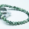 誠安天然石専門店【本店】TOP 素材で探す(サ行) 素材で探す(サ行)ジャスパー(碧玉) 素材で探す(サ行)ジャスパー(碧玉)グリーンスポットジャスパー ブレスレット グリーンスポットジャスパー ブレスレット 6mm [T285-1490] 価格: ¥600 (税込) [ポイント還元 6ポイント~] 販売期間: 数量: 個 在庫: 1個 在庫 1個 § 商品について §商品ID◆t285-1490 重 量◆物重さ:約 12.2g ◆ 総物重(梱包前) 約 12.2g (本体、箱等を含む)商品サイズ内周:約160mm(±5mm) 粒直径:約6mm(±0.5mm)【ジャスパー(碧玉)】 ジャスパーは石英の結晶に様々な不純物が混じり結合した鉱物で、アゲートやカルセドニーと同じ仲間です。 構成が似ているため分類が難しいのですが、基本的に不純物の割合が多く不透明のものがジャスパーとされています。 抽象画のような味わい深い模様を持つものや鮮やかな色合いを持つものなど多彩な表情を持ち、個性を楽しめる石のひとつだといえるでしょう。 ジャスパーは日本にも縁が深く弥生時代から管玉や勾玉に加工され古くから装飾品として愛用されてきました。 なかでも島根県の玉造温泉は玉造石を使った勾玉の名産地だったといわれており、この土地で産出されたジャスパーは玉造石のひとつとして「出雲石」という別名でも親しまれています。 このほかにも青森県で産出される「綿石」もジャスパーを含んだ美石として知られています。 ジャスパーは正しい判断力と決断力をもたらすとされ、心身の疲労やストレスを癒すヒーリング効果も期待されます。 バランスをとる能力に長けた石ですので、仕事や人間関係でうまく立ち回りたい方や、生活に安定や平穏を望む方に特におすすめです。 ⇒ ジャスパーをもっと詳しく ◆ワンポイント情報 ジャスパーは不純物の成分によって色合いが大きく異なります。ヘマタイトを含有したものは赤色、クローライトを含有したものは緑色、クレイ粘土などの不純物が含有した黄色など、多彩な色合いのジャスパーが存在します。 ▼出品商品の全ては産地から直接仕入れた新品ですが、天然の物ですので不純物や内包物、色むら、天然キズ、ひびがある場合がございます。また商品はできるだけ現物に近い色で撮影していますが、光源.カメラ.モニター画面により実物と色が若干異なる場合があります。▼物重さ、商品のサイズなどは測り方によって誤差が生じる場合があります。▼誠安では環境に配慮し最低限の簡易包装で商品をお届けいたします。