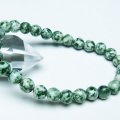 誠安天然石専門店【本店】TOP 素材で探す(サ行) 素材で探す(サ行)ジャスパー(碧玉) 素材で探す(サ行)ジャスパー(碧玉)グリーンスポットジャスパー ブレスレット グリーンスポットジャスパー ブレスレット 7mm [T285-1491] 価格: ¥900 (税込) [ポイント還元 9ポイント~] 販売期間: 数量: 個 在庫: 1個 在庫 1個 § 商品について §商品ID◆t285-1491 重 量◆物重さ:約 15.1g ◆ 総物重(梱包前) 約 15.1g (本体、箱等を含む)商品サイズ内周:約160mm(±5mm) 粒直径:約7mm(±0.5mm)【ジャスパー(碧玉)】 ジャスパーは石英の結晶に様々な不純物が混じり結合した鉱物で、アゲートやカルセドニーと同じ仲間です。 構成が似ているため分類が難しいのですが、基本的に不純物の割合が多く不透明のものがジャスパーとされています。 抽象画のような味わい深い模様を持つものや鮮やかな色合いを持つものなど多彩な表情を持ち、個性を楽しめる石のひとつだといえるでしょう。 ジャスパーは日本にも縁が深く弥生時代から管玉や勾玉に加工され古くから装飾品として愛用されてきました。 なかでも島根県の玉造温泉は玉造石を使った勾玉の名産地だったといわれており、この土地で産出されたジャスパーは玉造石のひとつとして「出雲石」という別名でも親しまれています。 このほかにも青森県で産出される「綿石」もジャスパーを含んだ美石として知られています。 ジャスパーは正しい判断力と決断力をもたらすとされ、心身の疲労やストレスを癒すヒーリング効果も期待されます。 バランスをとる能力に長けた石ですので、仕事や人間関係でうまく立ち回りたい方や、生活に安定や平穏を望む方に特におすすめです。 ⇒ ジャスパーをもっと詳しく ◆ワンポイント情報 ジャスパーは不純物の成分によって色合いが大きく異なります。ヘマタイトを含有したものは赤色、クローライトを含有したものは緑色、クレイ粘土などの不純物が含有した黄色など、多彩な色合いのジャスパーが存在します。 ▼出品商品の全ては産地から直接仕入れた新品ですが、天然の物ですので不純物や内包物、色むら、天然キズ、ひびがある場合がございます。また商品はできるだけ現物に近い色で撮影していますが、光源.カメラ.モニター画面により実物と色が若干異なる場合があります。▼物重さ、商品のサイズなどは測り方によって誤差が生じる場合があります。▼誠安では環境に配慮し最低限の簡易包装で商品をお届けいたします。