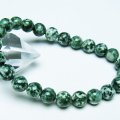 誠安天然石専門店【本店】TOP 素材で探す(サ行) 素材で探す(サ行)ジャスパー(碧玉) 素材で探す(サ行)ジャスパー(碧玉)グリーンスポットジャスパー ブレスレット グリーンスポットジャスパー ブレスレット 8mm [T285-1536] 価格: ¥1,000 (税込) [ポイント還元 10ポイント~] 販売期間: 数量: 個 在庫: 1個 在庫 1個 § 商品について §商品ID◆t285-1536 重 量◆物重さ:約 19.9g ◆ 総物重(梱包前) 約 19.9g (本体、箱等を含む)商品サイズ内周:約160mm(±5mm) 粒直径:約8mm(±0.5mm)【ジャスパー(碧玉)】 ジャスパーは石英の結晶に様々な不純物が混じり結合した鉱物で、アゲートやカルセドニーと同じ仲間です。 構成が似ているため分類が難しいのですが、基本的に不純物の割合が多く不透明のものがジャスパーとされています。 抽象画のような味わい深い模様を持つものや鮮やかな色合いを持つものなど多彩な表情を持ち、個性を楽しめる石のひとつだといえるでしょう。 ジャスパーは日本にも縁が深く弥生時代から管玉や勾玉に加工され古くから装飾品として愛用されてきました。 なかでも島根県の玉造温泉は玉造石を使った勾玉の名産地だったといわれており、この土地で産出されたジャスパーは玉造石のひとつとして「出雲石」という別名でも親しまれています。 このほかにも青森県で産出される「綿石」もジャスパーを含んだ美石として知られています。 ジャスパーは正しい判断力と決断力をもたらすとされ、心身の疲労やストレスを癒すヒーリング効果も期待されます。 バランスをとる能力に長けた石ですので、仕事や人間関係でうまく立ち回りたい方や、生活に安定や平穏を望む方に特におすすめです。 ⇒ ジャスパーをもっと詳しく ◆ワンポイント情報 ジャスパーは不純物の成分によって色合いが大きく異なります。ヘマタイトを含有したものは赤色、クローライトを含有したものは緑色、クレイ粘土などの不純物が含有した黄色など、多彩な色合いのジャスパーが存在します。 ▼出品商品の全ては産地から直接仕入れた新品ですが、天然の物ですので不純物や内包物、色むら、天然キズ、ひびがある場合がございます。また商品はできるだけ現物に近い色で撮影していますが、光源.カメラ.モニター画面により実物と色が若干異なる場合があります。▼物重さ、商品のサイズなどは測り方によって誤差が生じる場合があります。▼誠安では環境に配慮し最低限の簡易包装で商品をお届けいたします。