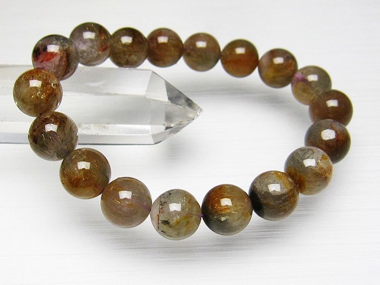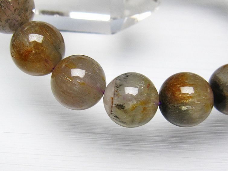セイクリッドセブンは水晶・アメジスト・カコクセナイト・ゲーサイト・スモーキークォーツ・ルチル・レビドクロサイトの7つの鉱物を内包した天然石です。