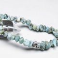 誠安天然石専門店【本店】TOP 素材で探す(ラ行) 素材で探す(ラ行)ラリマー(ブルーペクトライト)ブレスレット ブレスレット ラリマー ブレスレット [t301-1207] 価格: ¥900 (税込) [ポイント還元 9ポイント~] 販売期間: 数量: 個 在庫: 1個 在庫 1個 § 商品について §商品ID◆t301-1207 重 量◆物重さ:約 18.3g ◆ 総物重(梱包前) 約 18.3g (本体、箱等を含む)商品サイズ◆内周:約163mm(±5mm)【ラリマー(ブルーペクトライト)】 ラリマーは正式な鉱物名を「ブルーペクトライト」と呼びます。 カリブの海を思わせる美しい鮮やかな色合いと波のような模様が魅力の天然石で、産地であるドミニカ共和国のナショナル・ストーンにも認定されています。 ラリマーは三大ヒーリングストーンの一つに名を連ねるほど癒しの力が強く、怒りや闘争心といった感情を沈めて精神の安定をもたらすとされています。 愛と平和の象徴ともいわれており、他人に対しても寛容な心で接することができるようになるので愛のある良好な人間関係を築くことができるといわれています。 またカリスマ性やクリエイティブな能力を高める効果も期待され、有名人の愛用ストーンとしても知られています。 このほかにもラリマーは霊的な力がとても強いとされており、神秘的な体験や魂レベルでの成長、霊的コンタクトをもたらすといわれています。深いリラックス状態に導いてくれるので、癒しだけでなく瞑想の効果をより高めたい方にもおすすめです。 ⇒ ラリマーをもっと詳しく ◆ワンポイント情報 ラリマーはモース硬度4.5~5と低くく、直射日光や水分によっても褪色・劣化しやすいので美しい状態を保つために取り扱いには十分注意してください。 ▼出品商品の全ては産地から直接仕入れた新品ですが、天然の物ですので不純物や内包物、色むら、天然キズ、ひびがある場合がございます。また商品はできるだけ現物に近い色で撮影していますが、光源.カメラ.モニター画面により実物と色が若干異なる場合があります。▼物重さ、商品のサイズなどは測り方によって誤差が生じる場合があります。▼誠安では環境に配慮し最低限の簡易包装で商品をお届けいたします。