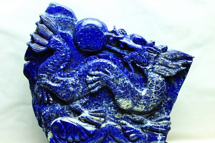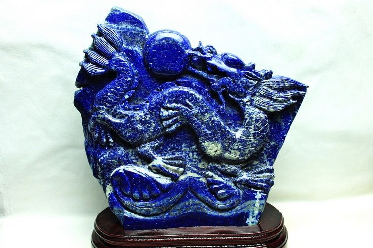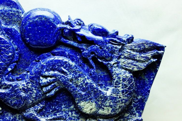 4.1Kg ラピスラズリ 手彫り 龍 置物[T362-522]