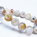 誠安天然石専門店【本店】TOP 素材で探す(ア行) 素材で探す(ア行)アゲート(メノウ・瑪瑙)ブレスレット ブレスレット アゲート笑口 ブレスレット 12mm [T39-3202] 価格: ¥2,580 (税込) [ポイント還元 25ポイント~] 販売期間: 数量: 個 在庫: 1個 在庫 1個 § 商品について §商品ID◆t39-3202 重 量◆物重さ:約 41g ◆ 総物重(梱包前) 約 41g (本体、箱等を含む)商品サイズ内周:約166mm(±5mm) 粒直径:約12mm(±0.5mm) ~13mm(±0.5mm)【アゲート(瑪瑙)】 和名では瑪瑙(めのう)といい、アゲートの模様が馬の脳のように見える事からこのような名前が付けられました。 アゲートは赤、緑、青、黄、黒など、様々な色に着色されることで石本来のパワーがさらにアップするといわれており、着色により魅力を増す天然石はアゲートだけとも言えます。 さらにはアゲートを組み合わせるとペアになっているペアアゲート(トレジャーメノウ)は龍穴を生み出すとされ、風水的にも良いといわれています。 アゲートは古来より日本やインドやチベットなどで魔よけやお守りとされてきました。 失敗や不幸を遠ざけ金運や仕事運、成功運とも結び付けてくれる効果のほか、安産のお守りにも良いとされています。 さらに家庭円満や対人関係をスムーズにするなど、オールマイティな効果を持った石です。 ⇒ アゲートをもっと詳しく ◆ワンポイント情報 アゲートはカルセドニーの変種で、染色がされていなくともそれぞれの種類に多様な色があります。 ざっと仲間を挙げてみてもオニキス(黒)、サードニクス(橙色)、ブルーアゲート(青)、グリーンアゲート(緑)、イエローアゲート(黄)、ブルーレースアゲート(縞青)、モスアゲート(縞緑)、天眼石(縞黒)、カーネリアン(橙色)、ジャスパー(多様な縞)などとても多くの特徴と色合いを持っています。 ▼出品商品の全ては産地から直接仕入れた新品ですが、天然の物ですので不純物や内包物、色むら、天然キズ、ひびがある場合がございます。また商品はできるだけ現物に近い色で撮影していますが、光源.カメラ.モニター画面により実物と色が若干異なる場合があります。▼物重さ、商品のサイズなどは測り方によって誤差が生じる場合があります。▼誠安では環境に配慮し最低限の簡易包装で商品をお届けいたします。