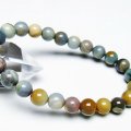 誠安天然石専門店【本店】TOP 素材で探す(ア行) 素材で探す(ア行)アゲート(メノウ・瑪瑙)ブレスレット ブレスレット アゲート ブレスレット 8mm [T439-1651] 価格: ¥800 (税込) [ポイント還元 8ポイント~] 販売期間: 数量: 個 在庫: 1個 在庫 1個 § 商品について §商品ID◆t439-1651 重 量◆物重さ:約 14.6g ◆ 総物重(梱包前) 約 14.6g (本体、箱等を含む)商品サイズ内周:約155mm(±5mm) 粒直径:約8mm(±0.5mm)【アゲート(瑪瑙)】 和名では瑪瑙(めのう)といい、アゲートの模様が馬の脳のように見える事からこのような名前が付けられました。 アゲートは赤、緑、青、黄、黒など、様々な色に着色されることで石本来のパワーがさらにアップするといわれており、着色により魅力を増す天然石はアゲートだけとも言えます。 さらにはアゲートを組み合わせるとペアになっているペアアゲート(トレジャーメノウ)は龍穴を生み出すとされ、風水的にも良いといわれています。 アゲートは古来より日本やインドやチベットなどで魔よけやお守りとされてきました。 失敗や不幸を遠ざけ金運や仕事運、成功運とも結び付けてくれる効果のほか、安産のお守りにも良いとされています。 さらに家庭円満や対人関係をスムーズにするなど、オールマイティな効果を持った石です。 ⇒ アゲートをもっと詳しく ◆ワンポイント情報 アゲートはカルセドニーの変種で、染色がされていなくともそれぞれの種類に多様な色があります。 ざっと仲間を挙げてみてもオニキス(黒)、サードニクス(橙色)、ブルーアゲート(青)、グリーンアゲート(緑)、イエローアゲート(黄)、ブルーレースアゲート(縞青)、モスアゲート(縞緑)、天眼石(縞黒)、カーネリアン(橙色)、ジャスパー(多様な縞)などとても多くの特徴と色合いを持っています。 ▼出品商品の全ては産地から直接仕入れた新品ですが、天然の物ですので不純物や内包物、色むら、天然キズ、ひびがある場合がございます。また商品はできるだけ現物に近い色で撮影していますが、光源.カメラ.モニター画面により実物と色が若干異なる場合があります。▼物重さ、商品のサイズなどは測り方によって誤差が生じる場合があります。▼誠安では環境に配慮し最低限の簡易包装で商品をお届けいたします。