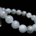 誠安天然石専門店【本店】TOP 素材で探す(マ行) 素材で探す(マ行)ムーンストーン(月長石)ブレスレット ブレスレット ムーンストーン ブレスレット 12mm [T459-11508] 価格: ¥2,000 (税込) [ポイント還元 20ポイント~] 販売期間: 数量: 個 在庫: 1個 在庫 1個 § 商品について §商品ID◆t459-11508 重 量◆物重さ:約 39.2g ◆ 総物重(梱包前) 約 39.2g (本体、箱等を含む)商品サイズ内周:約167mm(±5mm) 粒直径:約12mm(±0.5mm)【ムーンストーン(月長石)】 ムーンストーンは長石の一種で正長石(オーソクレース)を主としアルバイト(曹長石)成分を含んでいます。そのために美しいシラー効果が確認できます。乳白色や半透明のものが一般的ですが、他にも青やオレンジ等の様々な色が確認されています。柔らかい月の明かりのような光沢を持ち、真珠を思わせるような上品な石です。 ムーンストーンは古来より月の光が宿る石とされてきました。灼熱の国インドでは月は安らぎの象徴とし崇められてきましたが、その月の力を宿した聖石としてムーンストーンを身に着けていたそうです。 月の光のような柔らかな波動を持つムーンストーンは、心配や緊張を解きほぐし、心や情緒を安定させる効果があるとされていることからうつ病やノイローゼを防ぐとされています。また感受性や危機を察する直観力が高まるとされ、厄除けになることから旅人の守護石ともされています。 自分の中にある潜在能力を高め、ひらめきをもたらしてくれるとされていますのでクリエイティブな職業に携わっている方にお勧めしたい石です。 恋愛面においては「恋人たちの石」と呼ばれ、互いの絆や愛情を深めるために恋人への贈り物ともされてきました。またお目当ての異性に贈ると、恋が芽生えたり、友情が愛情に変わるとも言われています。一度終わった関係を復活させる等、別れた恋人同士を再び結びつけるという伝承もあります。遠距離恋愛の守護石としても有名です。変わらない愛情と優しい情熱を盛り上げてくれるそうですので、夫婦で持つのもお勧めです。 ■ワンポイント情報 月は女性性を象徴し、女性の身体の調子も月の満ち欠けに関わっているという説は有名です。ムーンストーンは女性特有の身体の不調や更年期等のイライラを鎮めてくれるとされています。また生理痛、不妊、出産の痛みを改善し、安産のお守りともされています。 暗い夜道を照らす月の光のように、闇の悪霊を祓い、危険を察知する感が良くなるとされていますので、夜道を歩いて帰宅する女性はお守りとして一つ持つと良いかもしれません。▼出品商品の全ては産地から直接仕入れた新品ですが、天然の物ですので不純物や内包物、色むら、天然キズ、ひびがある場合がございます。また商品はできるだけ現物に近い色で撮影していますが、光源.カメラ.モニター画面により実物と色が若干異なる場合があります。▼物重さ、商品のサイズなどは測り方によって誤差が生じる場合があります。▼誠安では環境に配慮し最低限の簡易包装で商品をお届けいたします。