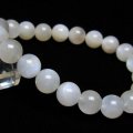 誠安天然石専門店【本店】TOP 素材で探す(マ行) 素材で探す(マ行)ムーンストーン(月長石)ブレスレット ブレスレット 今週の新着商品4月6日の新着商品 ムーンストーン ブレスレット 10mm [t459-11687] 価格: ¥1,300 (税込) [ポイント還元 13ポイント~] 販売期間: 数量: 個 在庫: 1個 在庫 1個 § 商品について §商品ID◆t459-11687 重 量◆物重さ:約 24.6g ◆ 総物重(梱包前) 約 24.6g (本体、箱等を含む)商品サイズ◆内周:約165mm(±5mm) 粒直径:約10mm(±0.5mm)【ムーンストーン(月長石)】 ムーンストーンは長石の一種で正長石(オーソクレース)を主としアルバイト(曹長石)成分を含んでいます。そのために美しいシラー効果が確認できます。乳白色や半透明のものが一般的ですが、他にも青やオレンジ等の様々な色が確認されています。柔らかい月の明かりのような光沢を持ち、真珠を思わせるような上品な石です。 ムーンストーンは古来より月の光が宿る石とされてきました。灼熱の国インドでは月は安らぎの象徴とし崇められてきましたが、その月の力を宿した聖石としてムーンストーンを身に着けていたそうです。 月の光のような柔らかな波動を持つムーンストーンは、心配や緊張を解きほぐし、心や情緒を安定させる効果があるとされていることからうつ病やノイローゼを防ぐとされています。また感受性や危機を察する直観力が高まるとされ、厄除けになることから旅人の守護石ともされています。 自分の中にある潜在能力を高め、ひらめきをもたらしてくれるとされていますのでクリエイティブな職業に携わっている方にお勧めしたい石です。 恋愛面においては「恋人たちの石」と呼ばれ、互いの絆や愛情を深めるために恋人への贈り物ともされてきました。またお目当ての異性に贈ると、恋が芽生えたり、友情が愛情に変わるとも言われています。一度終わった関係を復活させる等、別れた恋人同士を再び結びつけるという伝承もあります。遠距離恋愛の守護石としても有名です。変わらない愛情と優しい情熱を盛り上げてくれるそうですので、夫婦で持つのもお勧めです。 ■ワンポイント情報 月は女性性を象徴し、女性の身体の調子も月の満ち欠けに関わっているという説は有名です。ムーンストーンは女性特有の身体の不調や更年期等のイライラを鎮めてくれるとされています。また生理痛、不妊、出産の痛みを改善し、安産のお守りともされています。 暗い夜道を照らす月の光のように、闇の悪霊を祓い、危険を察知する感が良くなるとされていますので、夜道を歩いて帰宅する女性はお守りとして一つ持つと良いかもしれません。▼出品商品の全ては産地から直接仕入れた新品ですが、天然の物ですので不純物や内包物、色むら、天然キズ、ひびがある場合がございます。また商品はできるだけ現物に近い色で撮影していますが、光源.カメラ.モニター画面により実物と色が若干異なる場合があります。▼物重さ、商品のサイズなどは測り方によって誤差が生じる場合があります。▼誠安では環境に配慮し最低限の簡易包装で商品をお届けいたします。