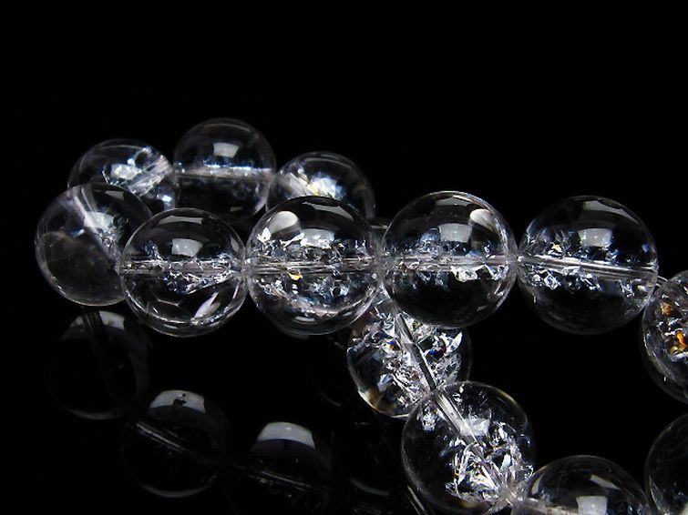 水晶内部のクラック(ひび)へ光を当てると、光が反射し虹色の輝きを見る事ができます。