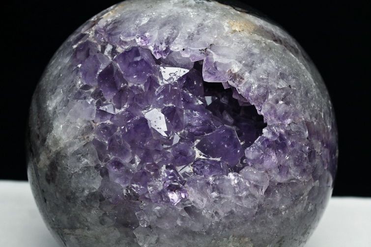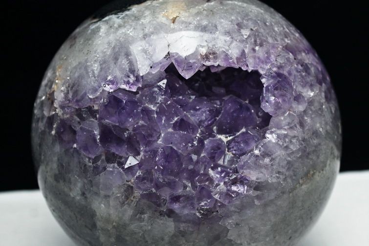 例えばブラジル産は結晶が大きめだが色味は少し薄め、ウルグアイ産は結晶は小さく細かいが色味は濃紫の傾向、メキシコ産は細長い結晶でライラックの様な明るく透明感のある紫など特徴が異なります。