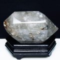 水晶の結晶が生成していく過程でいったん成長が止まり、その後再び成長を開始すると、その境目に気泡や他の物質が取り込まれ、まるで山の影を思わせる模様ができます。時にはそうした山の影が幾層にも連なっる場合があります。こうしてできた石を、ファントム水晶と呼びます。和名では、[幻影水晶][幽霊水晶]と称される場合もあります。