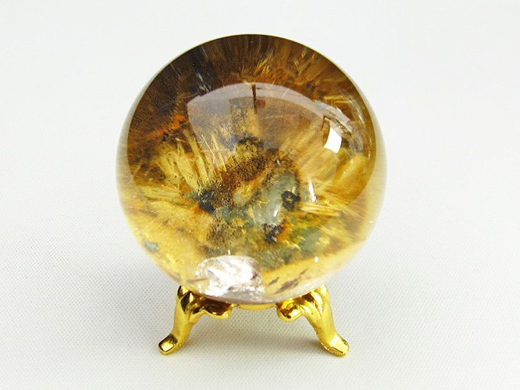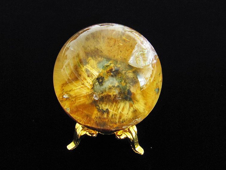 ゴールドタイチンルチル入り 水晶 丸玉 40mm [T637-4104]