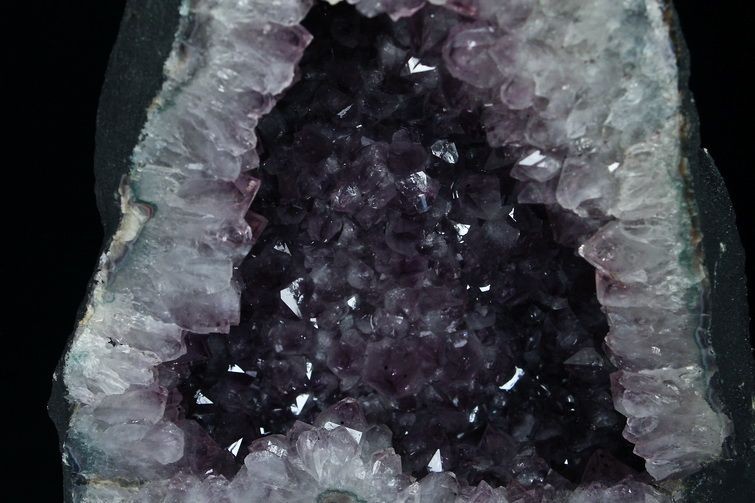 水晶は通常岩石の上に生成されますが、地層や岩の内側に洞窟状にできたものをアメジストドームといいます。アメジストの原石を半分に割り断面を美しく研磨すると、迫力と存在感、そしてエネルギーに満ちた置物に仕上がるのです。