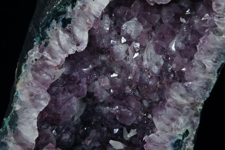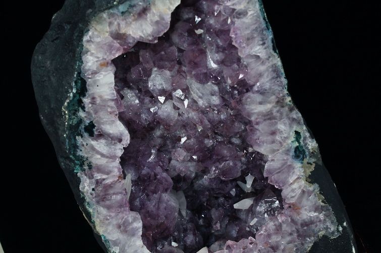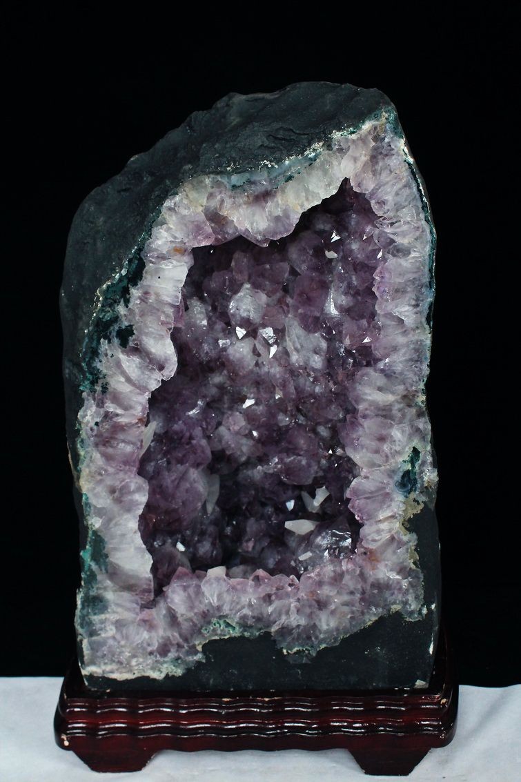 水晶は通常岩石の上に生成されますが、地層や岩の内側に洞窟状にできたものをアメジストドームといいます。アメジストの原石を半分に割り断面を美しく研磨すると、迫力と存在感、そしてエネルギーに満ちた置物に仕上がるのです。