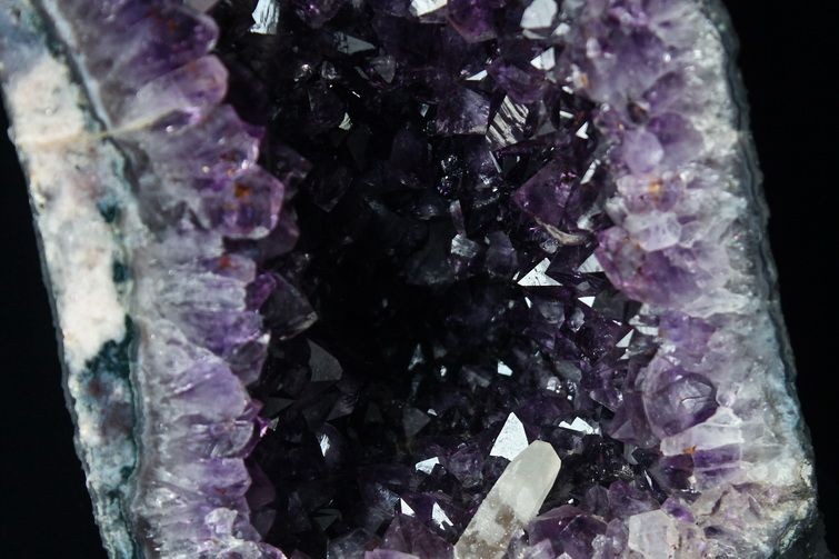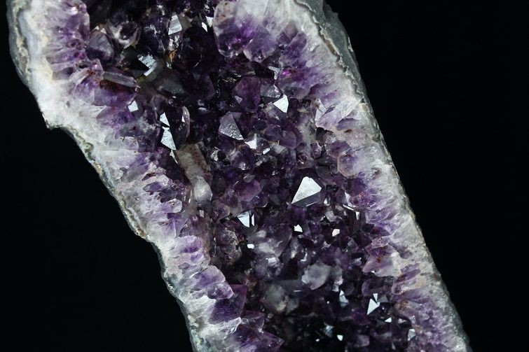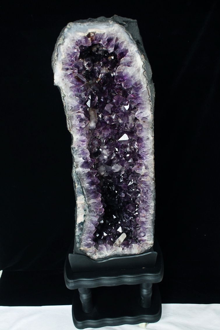 水晶は通常岩石の上に生成されますが、地層や岩の内側に洞窟状にできたものをアメジストドームといいます。アメジストの原石を半分に割り断面を美しく研磨すると、迫力と存在感、そしてエネルギーに満ちた置物に仕上がるのです。