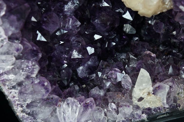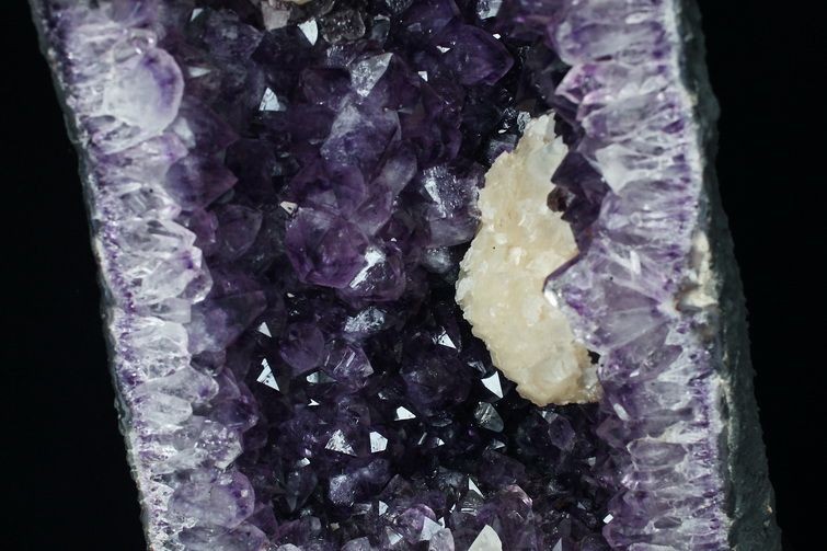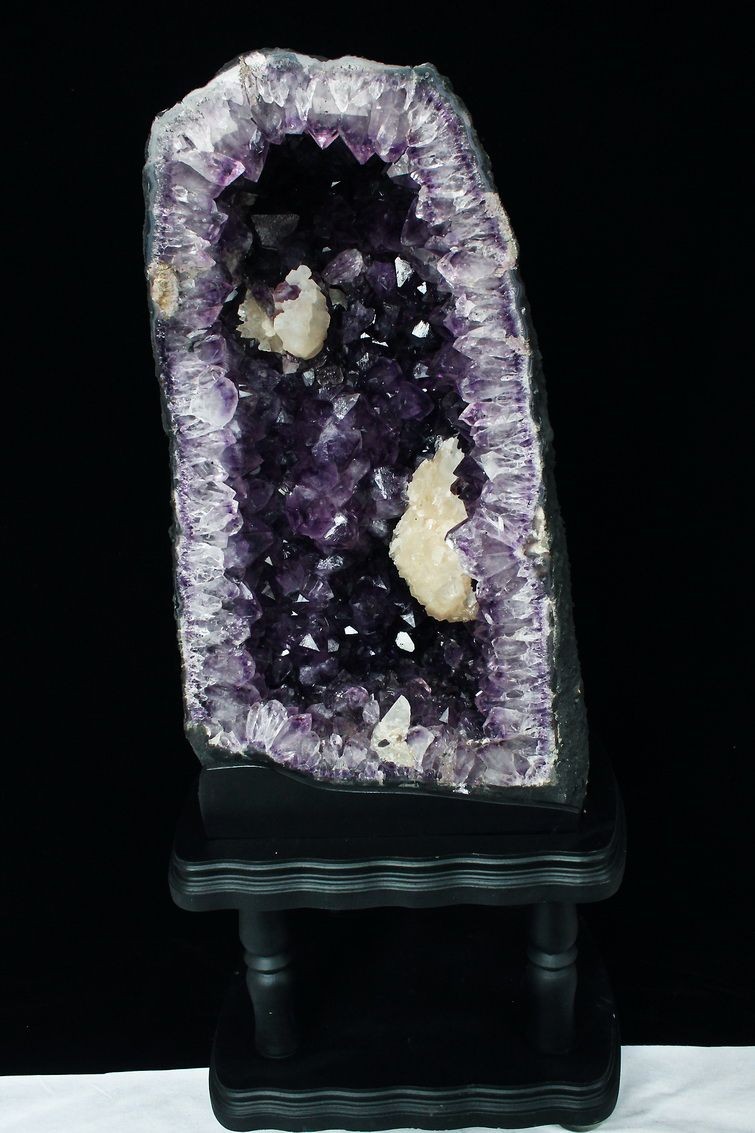 水晶は通常岩石の上に生成されますが、地層や岩の内側に洞窟状にできたものをアメジストドームといいます。アメジストの原石を半分に割り断面を美しく研磨すると、迫力と存在感、そしてエネルギーに満ちた置物に仕上がるのです。