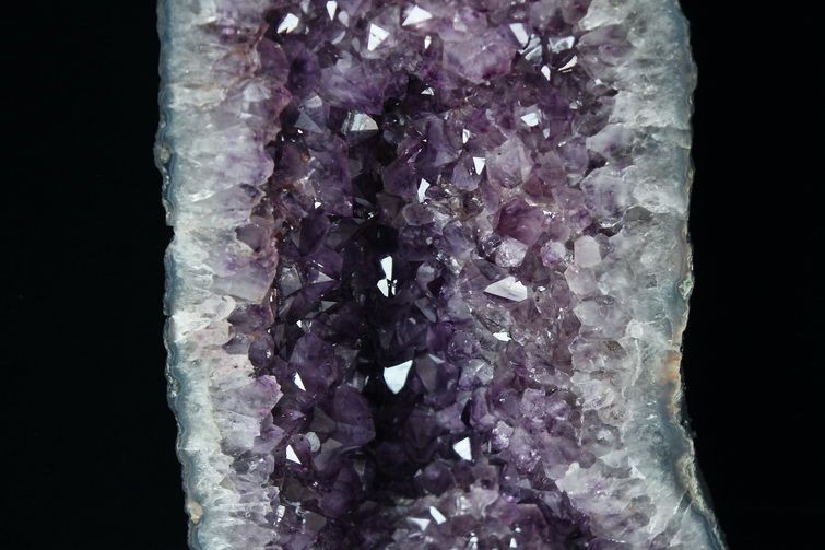 水晶は通常岩石の上に生成されますが、地層や岩の内側に洞窟状にできたものをアメジストドームといいます。アメジストの原石を半分に割り断面を美しく研磨すると、迫力と存在感、そしてエネルギーに満ちた置物に仕上がるのです。