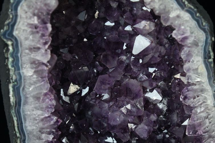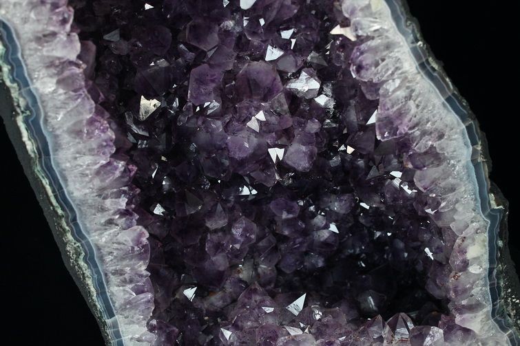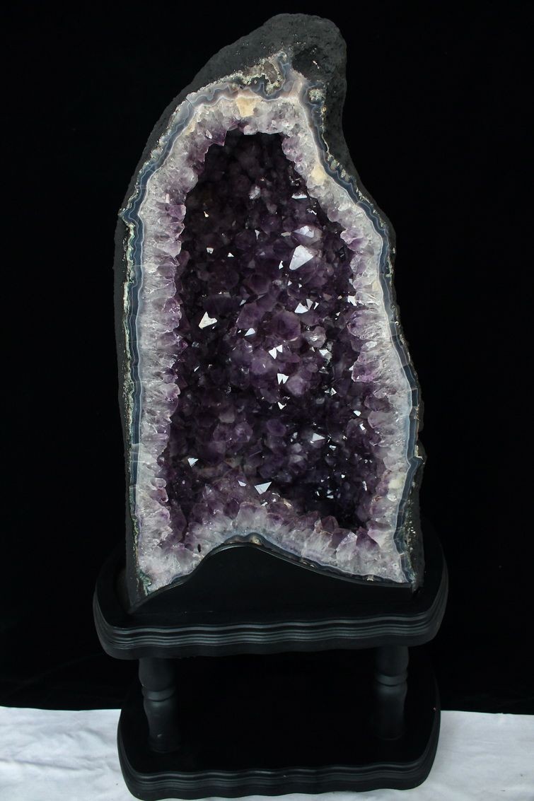 水晶は通常岩石の上に生成されますが、地層や岩の内側に洞窟状にできたものをアメジストドームといいます。アメジストの原石を半分に割り断面を美しく研磨すると、迫力と存在感、そしてエネルギーに満ちた置物に仕上がるのです。