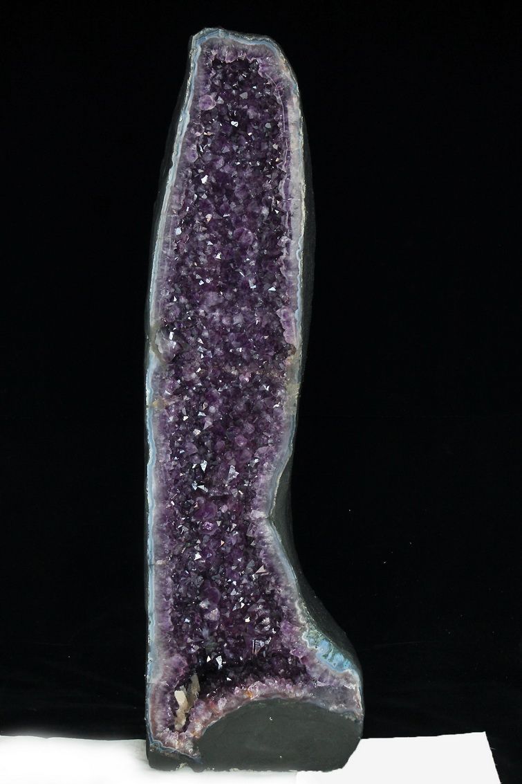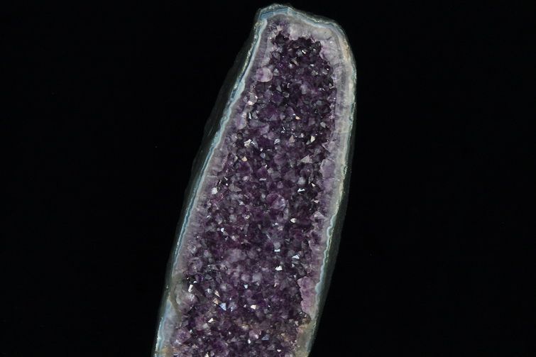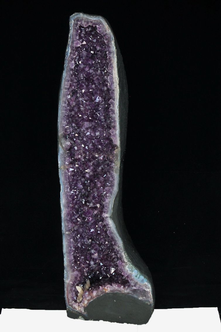 水晶は通常岩石の上に生成されますが、地層や岩の内側に洞窟状にできたものをアメジストドームといいます。アメジストの原石を半分に割り断面を美しく研磨すると、迫力と存在感、そしてエネルギーに満ちた置物に仕上がるのです。