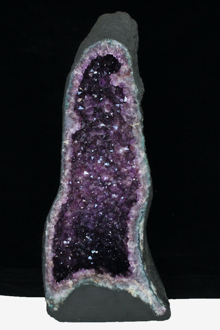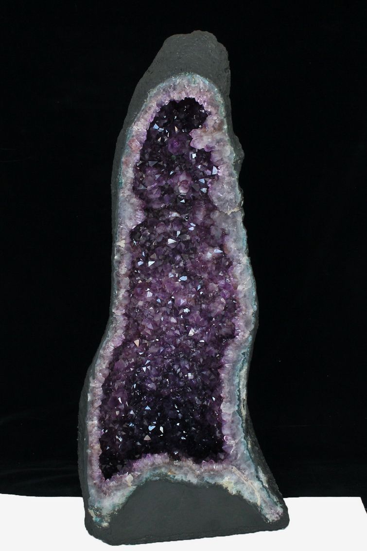 水晶は通常岩石の上に生成されますが、地層や岩の内側に洞窟状にできたものをアメジストドームといいます。アメジストの原石を半分に割り断面を美しく研磨すると、迫力と存在感、そしてエネルギーに満ちた置物に仕上がるのです。