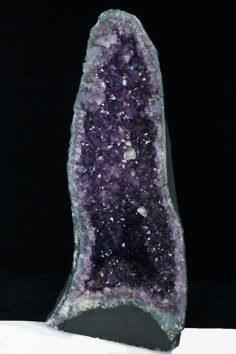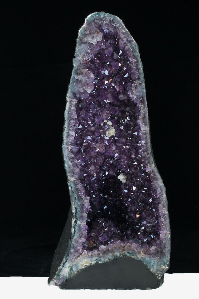 水晶は通常岩石の上に生成されますが、地層や岩の内側に洞窟状にできたものをアメジストドームといいます。アメジストの原石を半分に割り断面を美しく研磨すると、迫力と存在感、そしてエネルギーに満ちた置物に仕上がるのです。