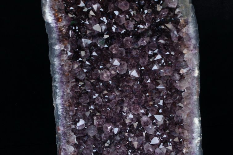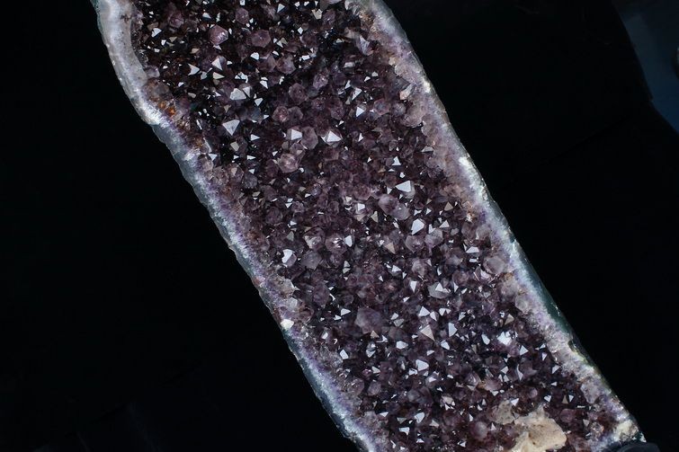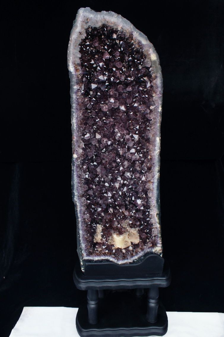 水晶は通常岩石の上に生成されますが、地層や岩の内側に洞窟状にできたものをアメジストドームといいます。アメジストの原石を半分に割り断面を美しく研磨すると、迫力と存在感、そしてエネルギーに満ちた置物に仕上がるのです。