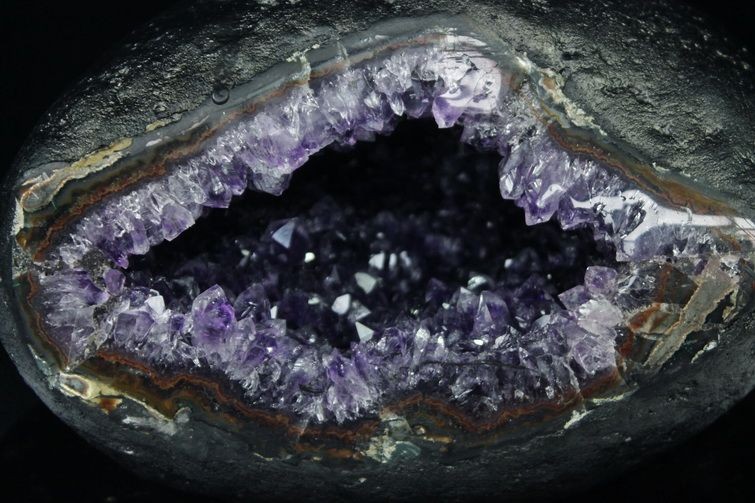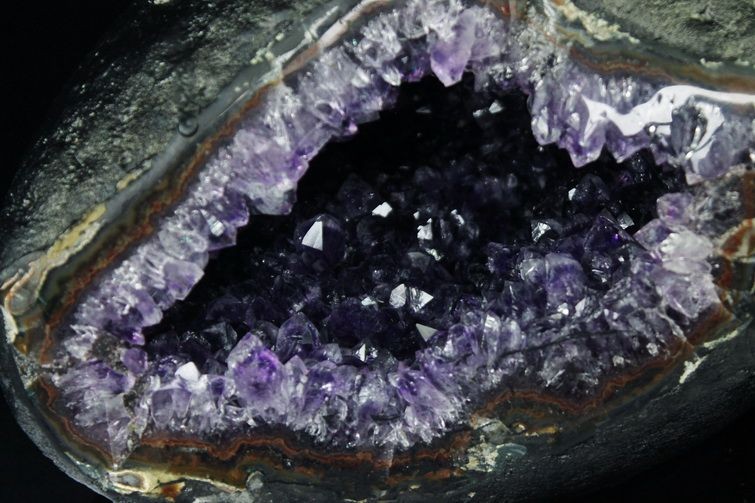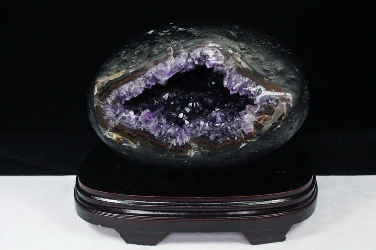 水晶は通常岩石の上に生成されますが、地層や岩の内側に洞窟状にできたものをアメジストドームといいます。アメジストの原石を半分に割り断面を美しく研磨すると、迫力と存在感、そしてエネルギーに満ちた置物に仕上がるのです。
