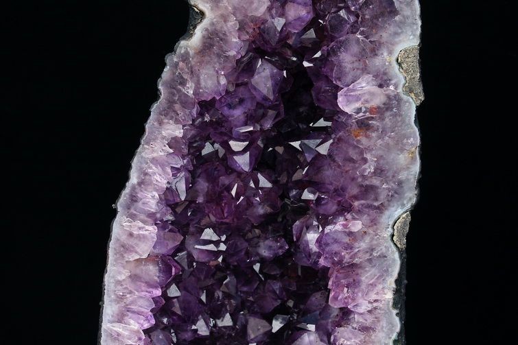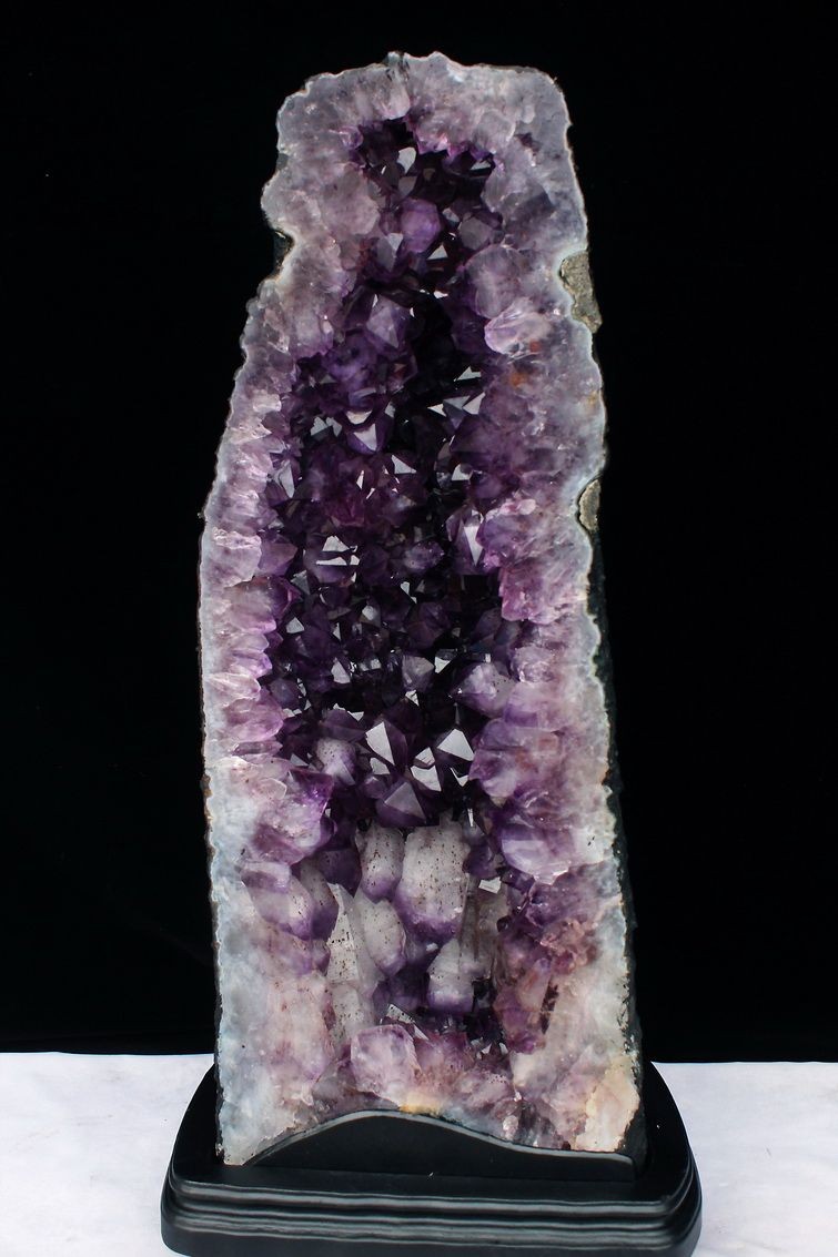 水晶は通常岩石の上に生成されますが、地層や岩の内側に洞窟状にできたものをアメジストドームといいます。アメジストの原石を半分に割り断面を美しく研磨すると、迫力と存在感、そしてエネルギーに満ちた置物に仕上がるのです。