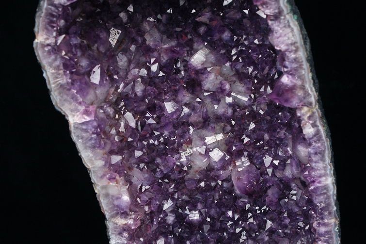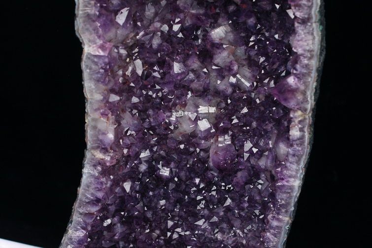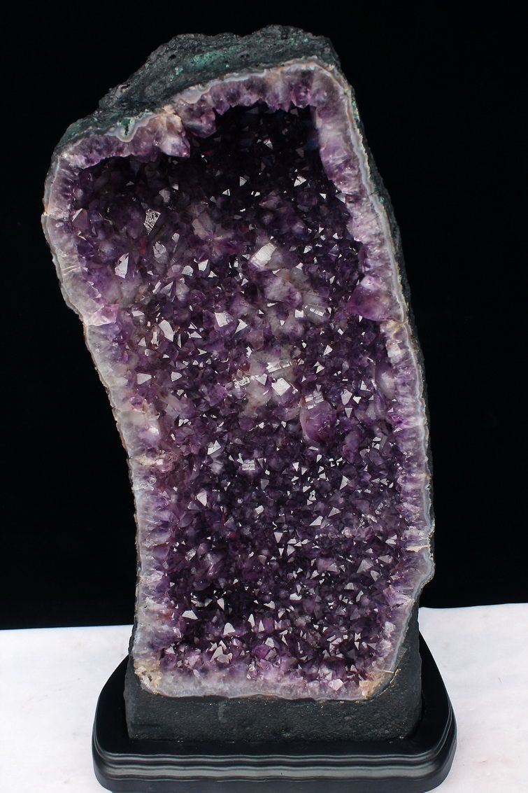水晶は通常岩石の上に生成されますが、地層や岩の内側に洞窟状にできたものをアメジストドームといいます。アメジストの原石を半分に割り断面を美しく研磨すると、迫力と存在感、そしてエネルギーに満ちた置物に仕上がるのです。