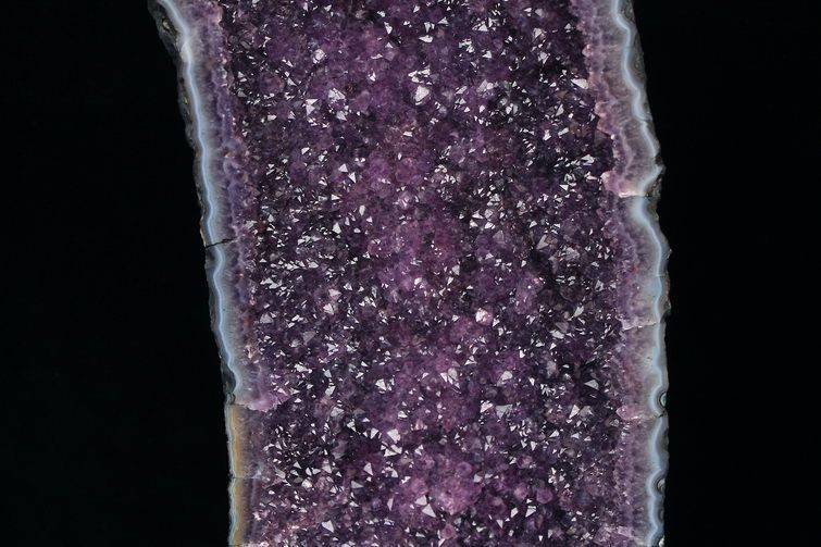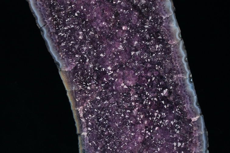 水晶は通常岩石の上に生成されますが、地層や岩の内側に洞窟状にできたものをアメジストドームといいます。アメジストの原石を半分に割り断面を美しく研磨すると、迫力と存在感、そしてエネルギーに満ちた置物に仕上がるのです。