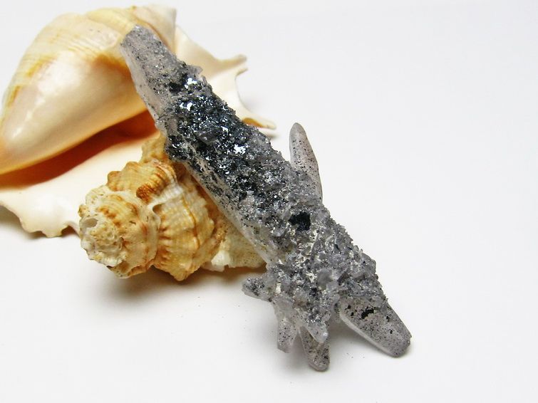 スティブナイトは「アンチモン」と呼ばれるレアメタルが含有された鉛色の硫化鉱物です。アンチモンは重要金属であり、難燃剤や合金など工業用品の材料として用いられます。