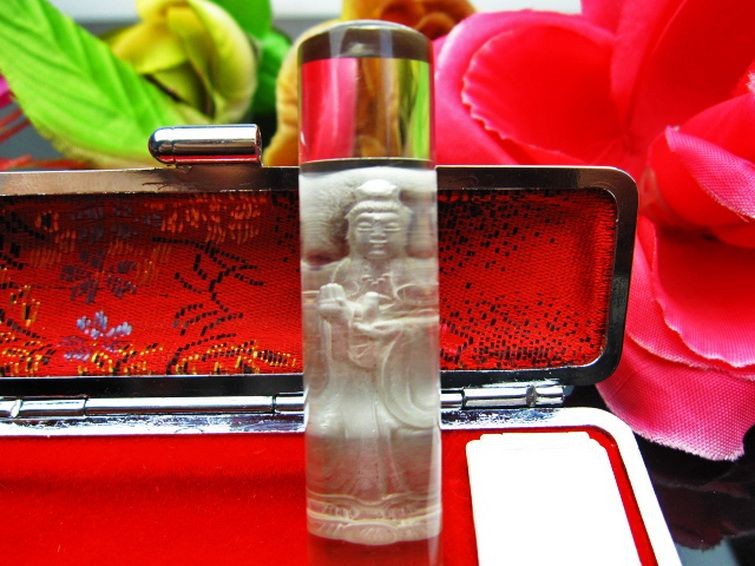誠安天然石専門店【本店】TOP 素材で探す(ラ行) 素材で探す(ラ行)ルチル印材 印材 ルチル水晶 中彫 観音 観音 印材 15mm [T71-18] 価格: ¥17,500 (税込) [ポイント還元 175ポイント~] 販売期間: 数量: 個 在庫: 1個 在庫 1個 レビューはありません § 商品について § 商品ID ◆ T71-18 重 量 ◆ 物重さ:約 26g ◆ 総物重(梱包前) 約 76g (本体、箱等を含む) 商品サイズ ◆ 高約:61mm 横約:15mm 【ルチルクォーツ(針入水晶)】ルチルクォーツは近年大人気の針状物質が入った水晶です。繊細な針が水晶の中でひしめきあい、きらきらと輝く様はまさに自然の芸術品。様々な色のタイプがありますが、共通する効果としては財運や金運を強力に集め、事業運、商売運、目標達成、直観力をもパワーアップさせると言います。また邪気を払ってくれるとされています。財に関わる直観力が冴えるとされますので、投資やギャンブル運アップも期待できます。■ワンポイント情報一般にクリアでかつ金針が密集しているもの程価値があるとされていますが、内包物を含む水晶は濁ったように結晶しやすく、ルチルクォーツは針が多くなるとどうしても透明感は下がってきます。しかしながら天然石は世界に一つしかありません。いろいろ状態のルチルがありますので直感で閃いたものが、世界で一人の自分のための水晶といえるでしょう。気の遠くなるような年月をかけ育つ水晶の中に、偶然に針状物質が入り込む。この奇跡のような自然の神秘に是非触れてみて下さい。体の底からパワーが湧き出してくるはずです。【水晶(石英、クリスタルクォーツ)】水晶とは石英を指しますが、一般的に無色透明のものをクリアクォーツやロッククリスタルと呼んでいます。水のように美しく透き通ったものが良いと思われがちですが、内部にヒビや他の鉱物などのインクルージョン(内包物)が入っているものがあり、それが天然物の証。また、インクルージョンによって様々な種類に分類され、それぞれ違った印象を与えてくれます。古くから呪い事に使われてきた水晶に秘められたパワーはとても万能で、あらゆる場面に対応するといわれています。特に邪気を祓う力が強いため、人間関係を円滑にしたり、心身をクリアな状態にしたい場合に最適です。また空間を浄化する作用もあるとされ、インテリアとしても高い人気を誇っています。石自体に強い自浄作用があり、他のパワーストーンが吸収した負のエネルギーを浄化するといわれています。更にアクセサリーとして他の石と組み合わせる場合、それぞれの石の個性を引き出しバランスを取ってくれる効果があるそうなので、ぜひとも組み込んでおきたいですね。パワーストーン入門に最適な水晶ですが、愛好家にとってはかなり奥が深く最後に行き着くのもこの石なんだそうです。何もかもを見透かすような透明な水晶には、本当に神秘的なパワーが宿っているのかもしれません。■観音(風水)日本で観音と言えば、知らない人はいないのではないでしょうか。観音は日本で一番信仰を集める慈愛と慈悲の神様です。柔和な顔立ちから観音様を女性の神であると思っている方も多いのですが、実際は男性神であるといわれています。経典では[善男子][観音大士]などと呼ばれていることから、観音様が男性神であったことがわかります。古くから親しまれてきた観音様には、慈愛の神様にふさわしく守りと癒しの効果があるといわれています。疲れることが多い現代において、磨り減った心を柔和な微笑みを浮かべる観音様が癒してくれそうですね。 ▼出品商品の全ては産地から直接仕入れた新品ですが、天然の物ですので不純物や内包物、色むら、天然キズ、ひびがある場合がございます。 また商品はできるだけ現物に近い色で撮影していますが、光源.カメラ.モニター画面により実物と色が若干異なる場合があります。 ▼物重さ、商品のサイズなどは測り方によって誤差が生じる場合があります。 ▼写真の印鑑ケースは付属しません。 ▼誠安では環境に配慮し最低限の簡易包装で商品をお届けいたします。
