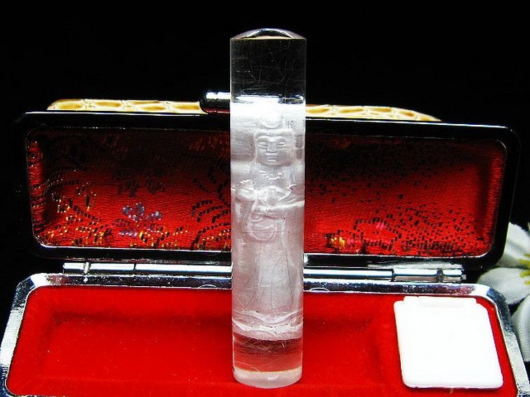 誠安天然石専門店【本店】TOP 素材で探す(ラ行) 素材で探す(ラ行)ルチル印材 印材 ルチル水晶 中彫 観音 観音 印材 12mm [T71-32] 価格: ¥17,500 (税込) [ポイント還元 175ポイント~] 販売期間: 数量: 個 在庫: 1個 在庫 1個 レビューはありません § 商品について § 商品ID ◆ T71-32 重 量 ◆ 物重さ:約 17g ◆ 総物重(梱包前) 約 34g (本体、箱等を含む) 商品サイズ ◆ 高約:60mm 横約:12mm 【ルチルクォーツ(針入水晶)】ルチルクォーツは近年大人気の針状物質が入った水晶です。繊細な針が水晶の中でひしめきあい、きらきらと輝く様はまさに自然の芸術品。様々な色のタイプがありますが、共通する効果としては財運や金運を強力に集め、事業運、商売運、目標達成、直観力をもパワーアップさせると言います。また邪気を払ってくれるとされています。財に関わる直観力が冴えるとされますので、投資やギャンブル運アップも期待できます。■ワンポイント情報一般にクリアでかつ金針が密集しているもの程価値があるとされていますが、内包物を含む水晶は濁ったように結晶しやすく、ルチルクォーツは針が多くなるとどうしても透明感は下がってきます。しかしながら天然石は世界に一つしかありません。いろいろ状態のルチルがありますので直感で閃いたものが、世界で一人の自分のための水晶といえるでしょう。気の遠くなるような年月をかけ育つ水晶の中に、偶然に針状物質が入り込む。この奇跡のような自然の神秘に是非触れてみて下さい。体の底からパワーが湧き出してくるはずです。【水晶(石英、クリスタルクォーツ)】水晶とは石英を指しますが、一般的に無色透明のものをクリアクォーツやロッククリスタルと呼んでいます。水のように美しく透き通ったものが良いと思われがちですが、内部にヒビや他の鉱物などのインクルージョン(内包物)が入っているものがあり、それが天然物の証。また、インクルージョンによって様々な種類に分類され、それぞれ違った印象を与えてくれます。古くから呪い事に使われてきた水晶に秘められたパワーはとても万能で、あらゆる場面に対応するといわれています。特に邪気を祓う力が強いため、人間関係を円滑にしたり、心身をクリアな状態にしたい場合に最適です。また空間を浄化する作用もあるとされ、インテリアとしても高い人気を誇っています。石自体に強い自浄作用があり、他のパワーストーンが吸収した負のエネルギーを浄化するといわれています。更にアクセサリーとして他の石と組み合わせる場合、それぞれの石の個性を引き出しバランスを取ってくれる効果があるそうなので、ぜひとも組み込んでおきたいですね。パワーストーン入門に最適な水晶ですが、愛好家にとってはかなり奥が深く最後に行き着くのもこの石なんだそうです。何もかもを見透かすような透明な水晶には、本当に神秘的なパワーが宿っているのかもしれません。■観音(風水)日本で観音と言えば、知らない人はいないのではないでしょうか。観音は日本で一番信仰を集める慈愛と慈悲の神様です。柔和な顔立ちから観音様を女性の神であると思っている方も多いのですが、実際は男性神であるといわれています。経典では[善男子][観音大士]などと呼ばれていることから、観音様が男性神であったことがわかります。古くから親しまれてきた観音様には、慈愛の神様にふさわしく守りと癒しの効果があるといわれています。疲れることが多い現代において、磨り減った心を柔和な微笑みを浮かべる観音様が癒してくれそうですね。 ▼出品商品の全ては産地から直接仕入れた新品ですが、天然の物ですので不純物や内包物、色むら、天然キズ、ひびがある場合がございます。 また商品はできるだけ現物に近い色で撮影していますが、光源.カメラ.モニター画面により実物と色が若干異なる場合があります。 ▼物重さ、商品のサイズなどは測り方によって誤差が生じる場合があります。 ▼写真の印鑑ケースは付属しません。 ▼誠安では環境に配慮し最低限の簡易包装で商品をお届けいたします。