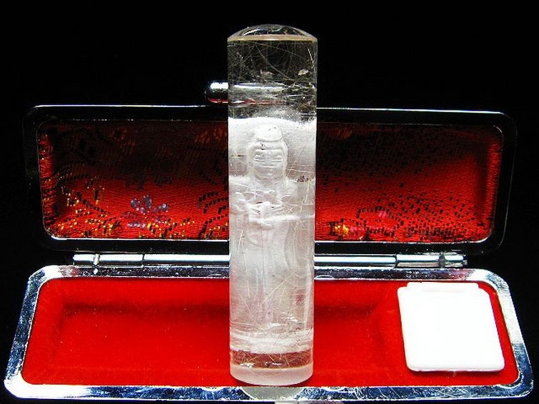 誠安天然石専門店【本店】TOP 素材で探す(ラ行) 素材で探す(ラ行)ルチル印材 印材 ルチル水晶中彫観音 印材 15mm [T71-37] 価格: ¥20,500 (税込) [ポイント還元 205ポイント~] 販売期間: 数量: 個 在庫: 1個 在庫 1個 レビューはありません § 商品について § 商品ID ◆ T71-37 重 量 ◆ 物重さ:約 27g ◆ 総物重(梱包前) 約 44g (本体、箱等を含む) 商品サイズ ◆ 高約:60mm 横約:15mm 【ルチルクォーツ(針入水晶)】ルチルクォーツは近年大人気の針状物質が入った水晶です。繊細な針が水晶の中でひしめきあい、きらきらと輝く様はまさに自然の芸術品。様々な色のタイプがありますが、共通する効果としては財運や金運を強力に集め、事業運、商売運、目標達成、直観力をもパワーアップさせると言います。また邪気を払ってくれるとされています。財に関わる直観力が冴えるとされますので、投資やギャンブル運アップも期待できます。■ワンポイント情報一般にクリアでかつ金針が密集しているもの程価値があるとされていますが、内包物を含む水晶は濁ったように結晶しやすく、ルチルクォーツは針が多くなるとどうしても透明感は下がってきます。しかしながら天然石は世界に一つしかありません。いろいろ状態のルチルがありますので直感で閃いたものが、世界で一人の自分のための水晶といえるでしょう。気の遠くなるような年月をかけ育つ水晶の中に、偶然に針状物質が入り込む。この奇跡のような自然の神秘に是非触れてみて下さい。体の底からパワーが湧き出してくるはずです。【水晶(石英、クリスタルクォーツ)】水晶とは石英を指しますが、一般的に無色透明のものをクリアクォーツやロッククリスタルと呼んでいます。水のように美しく透き通ったものが良いと思われがちですが、内部にヒビや他の鉱物などのインクルージョン(内包物)が入っているものがあり、それが天然物の証。また、インクルージョンによって様々な種類に分類され、それぞれ違った印象を与えてくれます。古くから呪い事に使われてきた水晶に秘められたパワーはとても万能で、あらゆる場面に対応するといわれています。特に邪気を祓う力が強いため、人間関係を円滑にしたり、心身をクリアな状態にしたい場合に最適です。また空間を浄化する作用もあるとされ、インテリアとしても高い人気を誇っています。石自体に強い自浄作用があり、他のパワーストーンが吸収した負のエネルギーを浄化するといわれています。更にアクセサリーとして他の石と組み合わせる場合、それぞれの石の個性を引き出しバランスを取ってくれる効果があるそうなので、ぜひとも組み込んでおきたいですね。パワーストーン入門に最適な水晶ですが、愛好家にとってはかなり奥が深く最後に行き着くのもこの石なんだそうです。何もかもを見透かすような透明な水晶には、本当に神秘的なパワーが宿っているのかもしれません。■観音(風水)日本で観音と言えば、知らない人はいないのではないでしょうか。観音は日本で一番信仰を集める慈愛と慈悲の神様です。柔和な顔立ちから観音様を女性の神であると思っている方も多いのですが、実際は男性神であるといわれています。経典では[善男子][観音大士]などと呼ばれていることから、観音様が男性神であったことがわかります。古くから親しまれてきた観音様には、慈愛の神様にふさわしく守りと癒しの効果があるといわれています。疲れることが多い現代において、磨り減った心を柔和な微笑みを浮かべる観音様が癒してくれそうですね。 ▼出品商品の全ては産地から直接仕入れた新品ですが、天然の物ですので不純物や内包物、色むら、天然キズ、ひびがある場合がございます。 また商品はできるだけ現物に近い色で撮影していますが、光源.カメラ.モニター画面により実物と色が若干異なる場合があります。 ▼物重さ、商品のサイズなどは測り方によって誤差が生じる場合があります。 ▼写真の印鑑ケースは付属しません。 ▼誠安では環境に配慮し最低限の簡易包装で商品をお届けいたします。