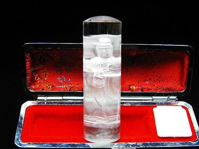 誠安天然石専門店【本店】TOP 素材で探す(ラ行) 素材で探す(ラ行)ルチル印材 印材 ルチル水晶中彫観音 印材 18mm [T71-53] 価格: ¥20,500 (税込) [ポイント還元 205ポイント~] 販売期間: 数量: 個 在庫: 1個 在庫 1個 レビューはありません § 商品について § 商品ID ◆ T71-53 重 量 ◆ 物重さ:約 40g ◆ 総物重(梱包前) 約 57g (本体、箱等を含む) 商品サイズ ◆ 高約:60mm 横約:18mm 【ルチルクォーツ(針入水晶)】ルチルクォーツは近年大人気の針状物質が入った水晶です。繊細な針が水晶の中でひしめきあい、きらきらと輝く様はまさに自然の芸術品。様々な色のタイプがありますが、共通する効果としては財運や金運を強力に集め、事業運、商売運、目標達成、直観力をもパワーアップさせると言います。また邪気を払ってくれるとされています。財に関わる直観力が冴えるとされますので、投資やギャンブル運アップも期待できます。■ワンポイント情報一般にクリアでかつ金針が密集しているもの程価値があるとされていますが、内包物を含む水晶は濁ったように結晶しやすく、ルチルクォーツは針が多くなるとどうしても透明感は下がってきます。しかしながら天然石は世界に一つしかありません。いろいろ状態のルチルがありますので直感で閃いたものが、世界で一人の自分のための水晶といえるでしょう。気の遠くなるような年月をかけ育つ水晶の中に、偶然に針状物質が入り込む。この奇跡のような自然の神秘に是非触れてみて下さい。体の底からパワーが湧き出してくるはずです。【水晶(石英、クリスタルクォーツ)】水晶とは石英を指しますが、一般的に無色透明のものをクリアクォーツやロッククリスタルと呼んでいます。水のように美しく透き通ったものが良いと思われがちですが、内部にヒビや他の鉱物などのインクルージョン(内包物)が入っているものがあり、それが天然物の証。また、インクルージョンによって様々な種類に分類され、それぞれ違った印象を与えてくれます。古くから呪い事に使われてきた水晶に秘められたパワーはとても万能で、あらゆる場面に対応するといわれています。特に邪気を祓う力が強いため、人間関係を円滑にしたり、心身をクリアな状態にしたい場合に最適です。また空間を浄化する作用もあるとされ、インテリアとしても高い人気を誇っています。石自体に強い自浄作用があり、他のパワーストーンが吸収した負のエネルギーを浄化するといわれています。更にアクセサリーとして他の石と組み合わせる場合、それぞれの石の個性を引き出しバランスを取ってくれる効果があるそうなので、ぜひとも組み込んでおきたいですね。パワーストーン入門に最適な水晶ですが、愛好家にとってはかなり奥が深く最後に行き着くのもこの石なんだそうです。何もかもを見透かすような透明な水晶には、本当に神秘的なパワーが宿っているのかもしれません。■観音(風水)日本で観音と言えば、知らない人はいないのではないでしょうか。観音は日本で一番信仰を集める慈愛と慈悲の神様です。柔和な顔立ちから観音様を女性の神であると思っている方も多いのですが、実際は男性神であるといわれています。経典では[善男子][観音大士]などと呼ばれていることから、観音様が男性神であったことがわかります。古くから親しまれてきた観音様には、慈愛の神様にふさわしく守りと癒しの効果があるといわれています。疲れることが多い現代において、磨り減った心を柔和な微笑みを浮かべる観音様が癒してくれそうですね。 ▼出品商品の全ては産地から直接仕入れた新品ですが、天然の物ですので不純物や内包物、色むら、天然キズ、ひびがある場合がございます。 また商品はできるだけ現物に近い色で撮影していますが、光源.カメラ.モニター画面により実物と色が若干異なる場合があります。 ▼物重さ、商品のサイズなどは測り方によって誤差が生じる場合があります。 ▼写真の印鑑ケースは付属しません。 ▼誠安では環境に配慮し最低限の簡易包装で商品をお届けいたします。