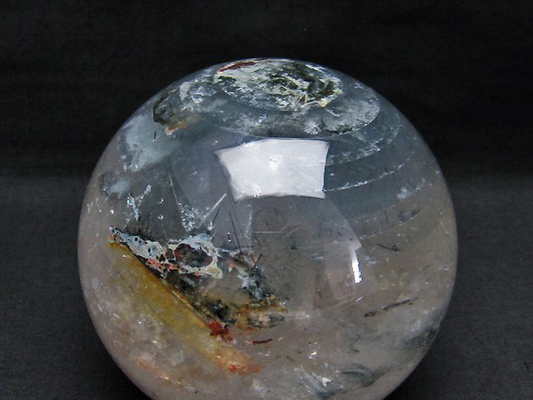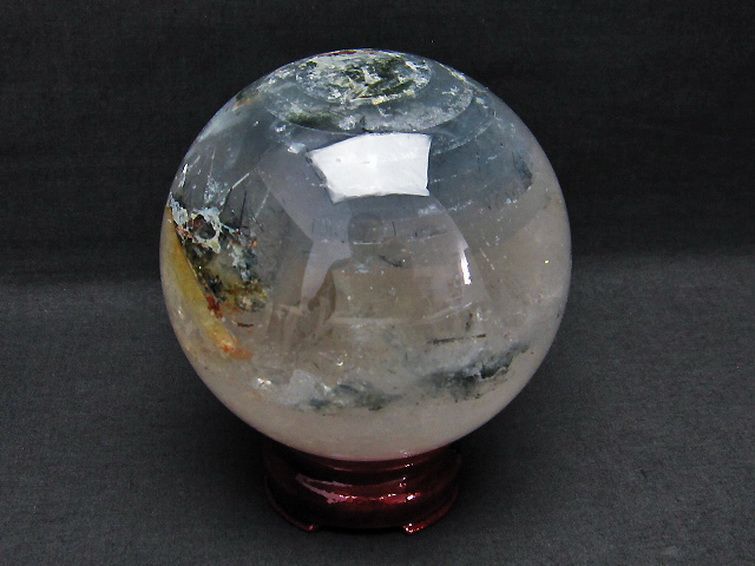 1.4Kg ルチル入り 水晶 丸玉 101mm [T718-2574]