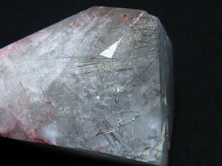 プラチナルチルの針はブルッカイト(板チタン石)と呼ばれる鉱石で、二度の温度差を経験し、針が成長したものです。