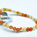 誠安天然石専門店【本店】TOP 素材で探す(ア行) 素材で探す(ア行)アゲート(メノウ・瑪瑙)ブレスレット ブレスレット 今週の新着商品2月18日の新着商品 アゲート ブレスレット 6mm [t85-10715] 価格: ¥500 (税込) [ポイント還元 5ポイント~] 販売期間: 数量: 個 在庫: 1個 在庫 1個 § 商品について §商品ID◆t85-10715 重 量◆物重さ:約 10g ◆ 総物重(梱包前) 約 10g (本体、箱等を含む)商品サイズ◆内周:約161mm(±5mm) 粒直径:約6mm(±0.5mm)【アゲート(瑪瑙)】 和名では瑪瑙(めのう)といい、アゲートの模様が馬の脳のように見える事からこのような名前が付けられました。 アゲートは赤、緑、青、黄、黒など、様々な色に着色されることで石本来のパワーがさらにアップするといわれており、着色により魅力を増す天然石はアゲートだけとも言えます。 さらにはアゲートを組み合わせるとペアになっているペアアゲート(トレジャーメノウ)は龍穴を生み出すとされ、風水的にも良いといわれています。 アゲートは古来より日本やインドやチベットなどで魔よけやお守りとされてきました。 失敗や不幸を遠ざけ金運や仕事運、成功運とも結び付けてくれる効果のほか、安産のお守りにも良いとされています。 さらに家庭円満や対人関係をスムーズにするなど、オールマイティな効果を持った石です。 ⇒ アゲートをもっと詳しく ◆ワンポイント情報 アゲートはカルセドニーの変種で、染色がされていなくともそれぞれの種類に多様な色があります。 ざっと仲間を挙げてみてもオニキス(黒)、サードニクス(橙色)、ブルーアゲート(青)、グリーンアゲート(緑)、イエローアゲート(黄)、ブルーレースアゲート(縞青)、モスアゲート(縞緑)、天眼石(縞黒)、カーネリアン(橙色)、ジャスパー(多様な縞)などとても多くの特徴と色合いを持っています。 ▼出品商品の全ては産地から直接仕入れた新品ですが、天然の物ですので不純物や内包物、色むら、天然キズ、ひびがある場合がございます。また商品はできるだけ現物に近い色で撮影していますが、光源.カメラ.モニター画面により実物と色が若干異なる場合があります。▼物重さ、商品のサイズなどは測り方によって誤差が生じる場合があります。▼誠安では環境に配慮し最低限の簡易包装で商品をお届けいたします。